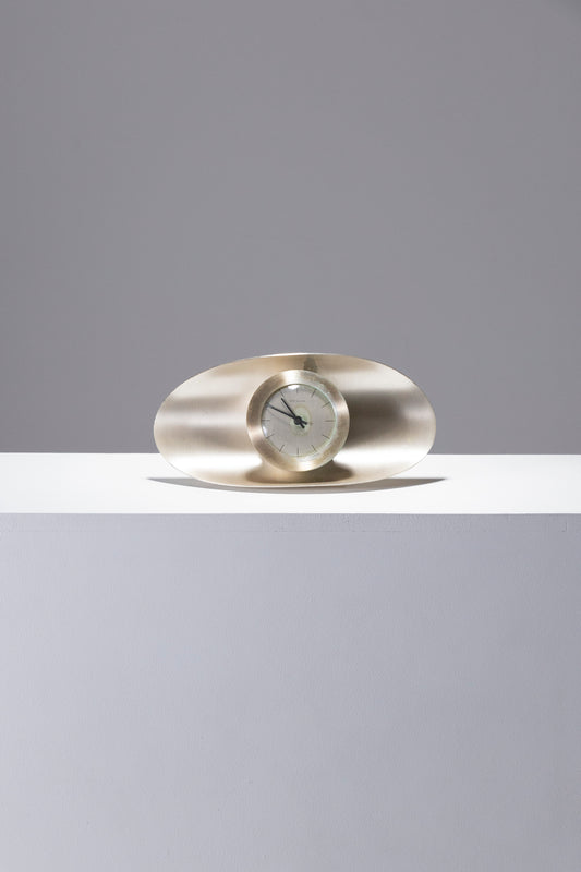 HORLOGE DE BUREAU EN MÉTAL ET VERRE, 1970s