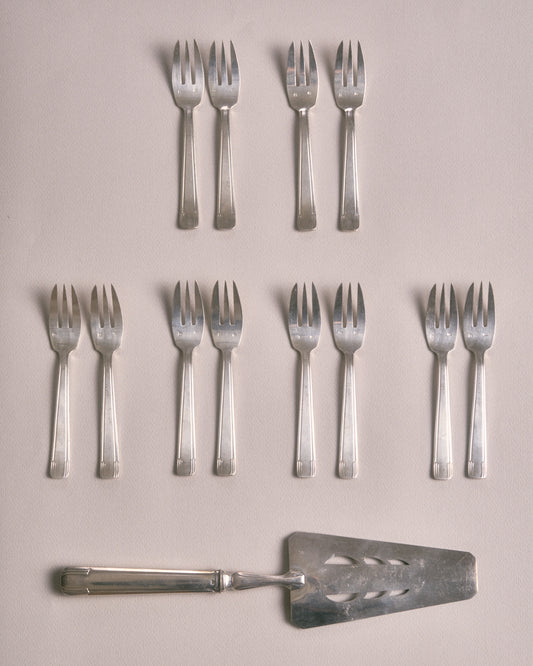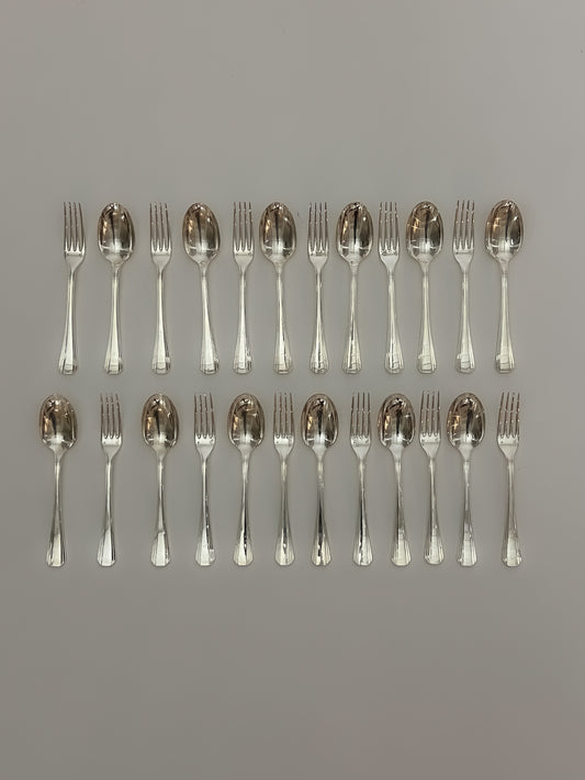SERVICE DE FOURCHETTES À DESSERT EN MÉTAL ARGENTÉ, ART DÉCO