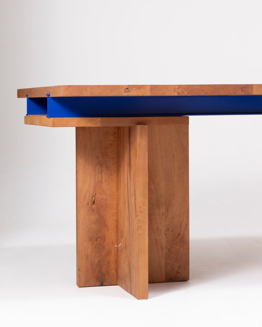 DIRK TRAVAILLE PRINCIPALEMENT LE BOIS MASSIF, SE CONCENTRANT D’ABORD SUR UNE ESTHÉTIQUE PROCÉDURALE, LES FORMES SONT DES RÉSULTATS DE RECHERCHES SUR LE TRAVAIL DU BOIS MASSIF ET COMMENT LE SUIVRE DANS SES PROPRES EXIGENCES. PARTAGEANT UNE IDÉOLOGIE SIMILAIRE À CELLE DE PIERRE CHAPO ET D'AUTRES FIGURES MAJEURES DU MOUVEMENT MODERNISTE, DIRK MEYLAERTS POSSÈDE UNE PROFONDE COMPRÉHENSION DU TRAVAIL DE SES PRÉDÉCESSEURS, LUI PERMETTANT AINSI D'INSUFFLER UNE TOUCHE DE MODERNITÉ À SES CRÉATIONS.