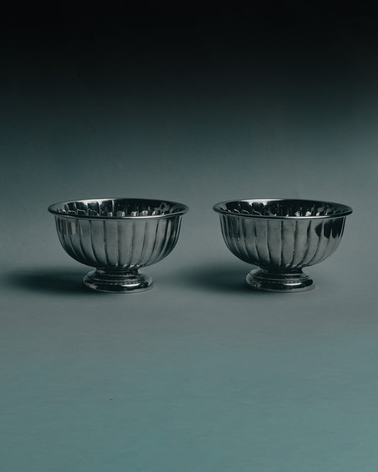 PAIRE DE COUPELLES EN MÉTAL ARGENTÉ POUR PETIT CHIENS ET CHATS, 1950s