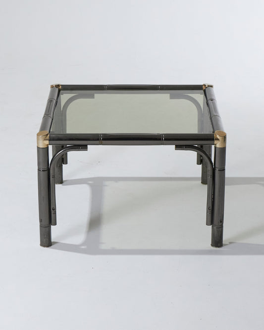 TABLE BASSE BAMBOU EN MÉTAL ET VERRE, 1980s
