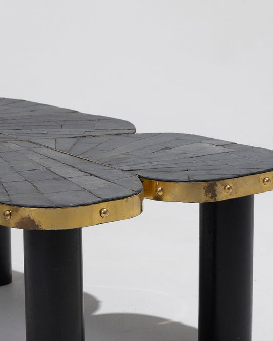 TABLE BASSE EN ARDOISE ET LAITON