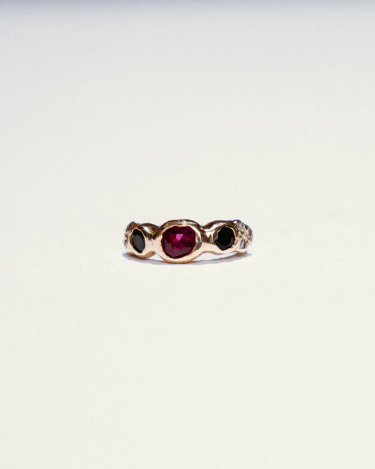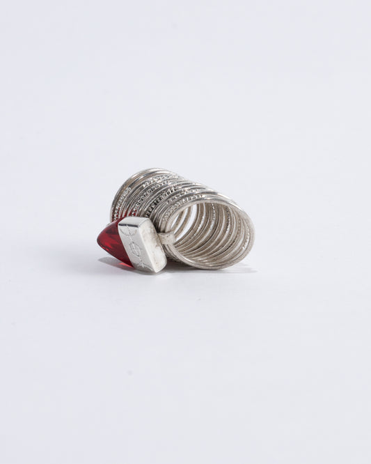 "AKOR" RING IN 925 SILVER AND RED CRYSTAL