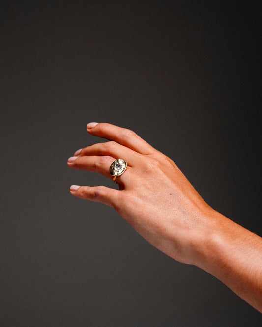 RING WITH INTERLACED CRYSTALS IN 950 SILVER