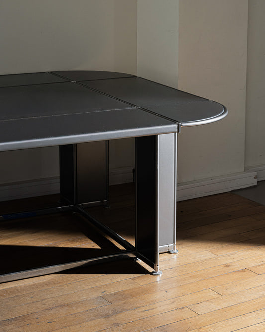 METAL AND LEATHER CONFERENCE TABLE, 1990s