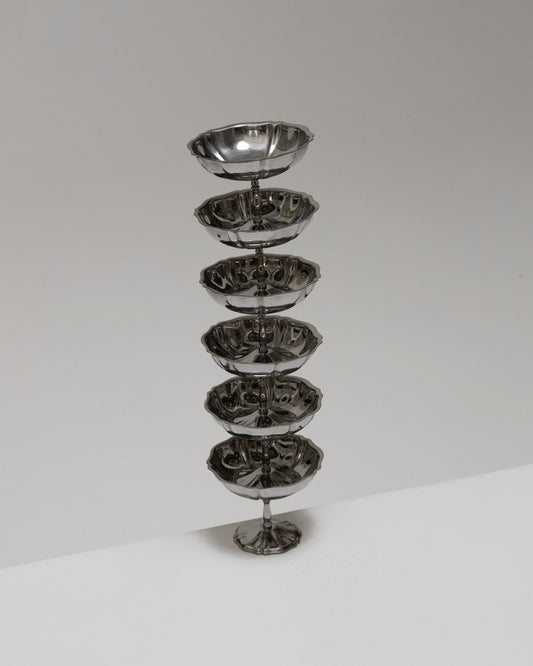 SET OF 6 SILVER-PLATED METAL CHAMPAGNE GLASSES
