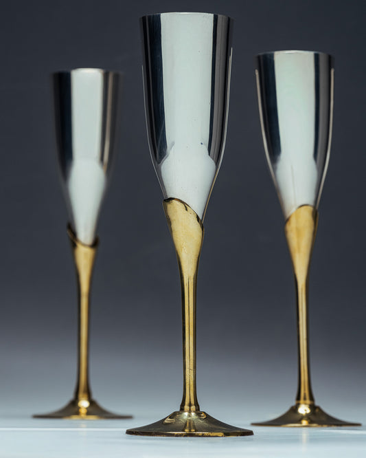 SET OF 4 METAL AND BRASS FLUTES, 1970s