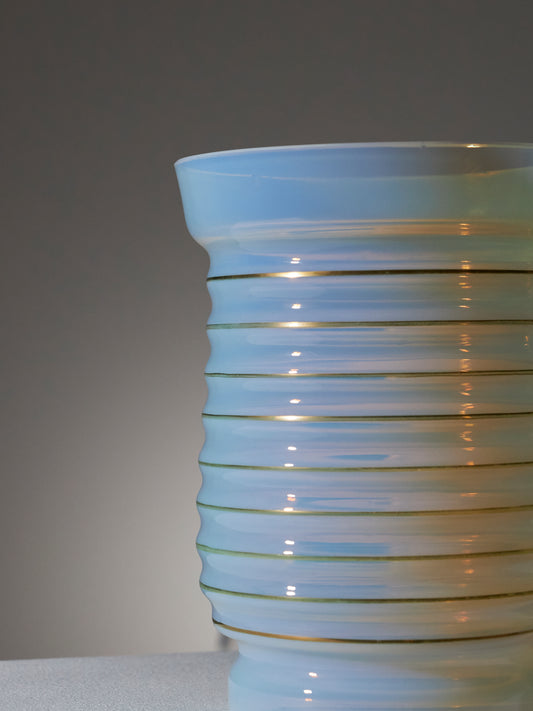Conical vase in turquoise ceramic, Acolay, 1950s