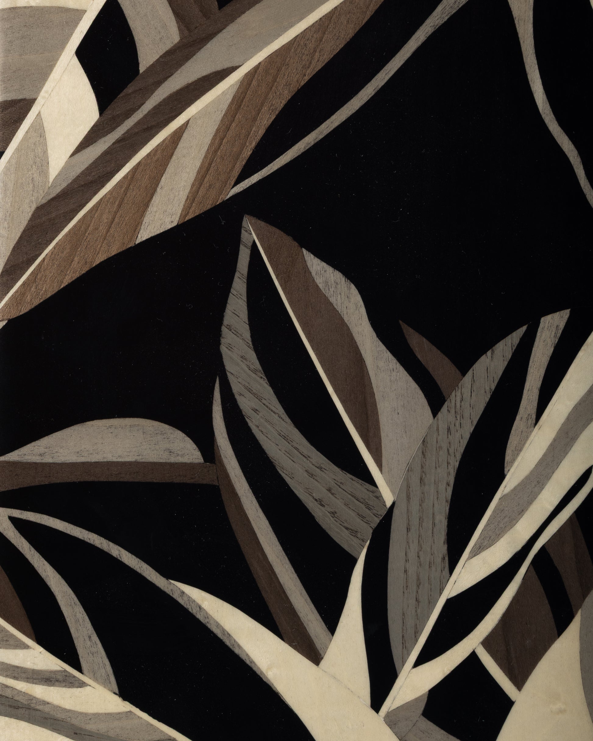 Inspired by the movement of the bamboo foliage, it plays on the contrasts of hues and veins to evoke organic forms.