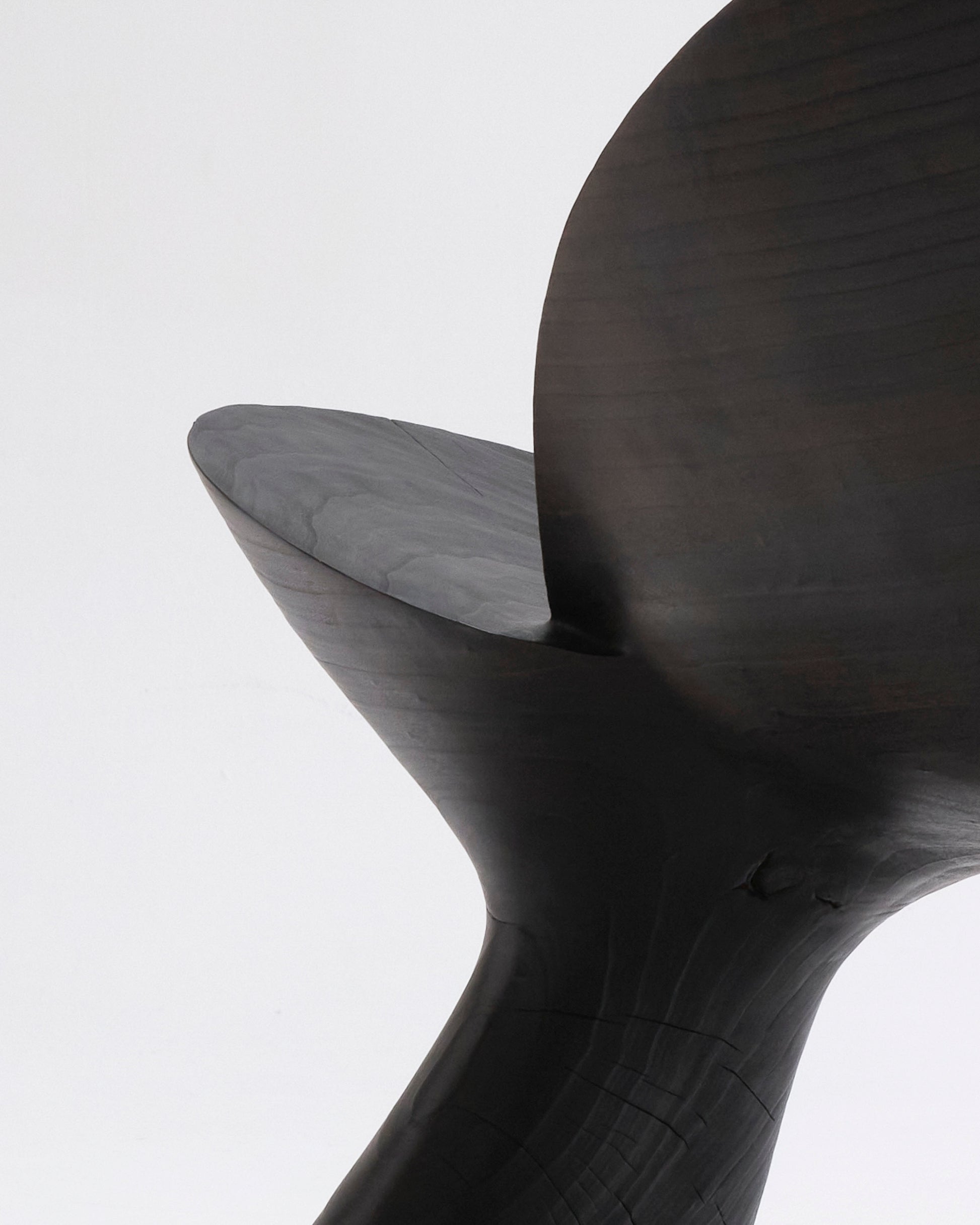 At the foot of the Pyrenees, in the heart of a wood and forest setting, Romain Paris Garnault established his workshop in 2022. It is here that he carves directly from tree trunk sections to shape unique furniture and objects, aiming above all to create sculptures to live with and to sensually enhance the very nature of the material.