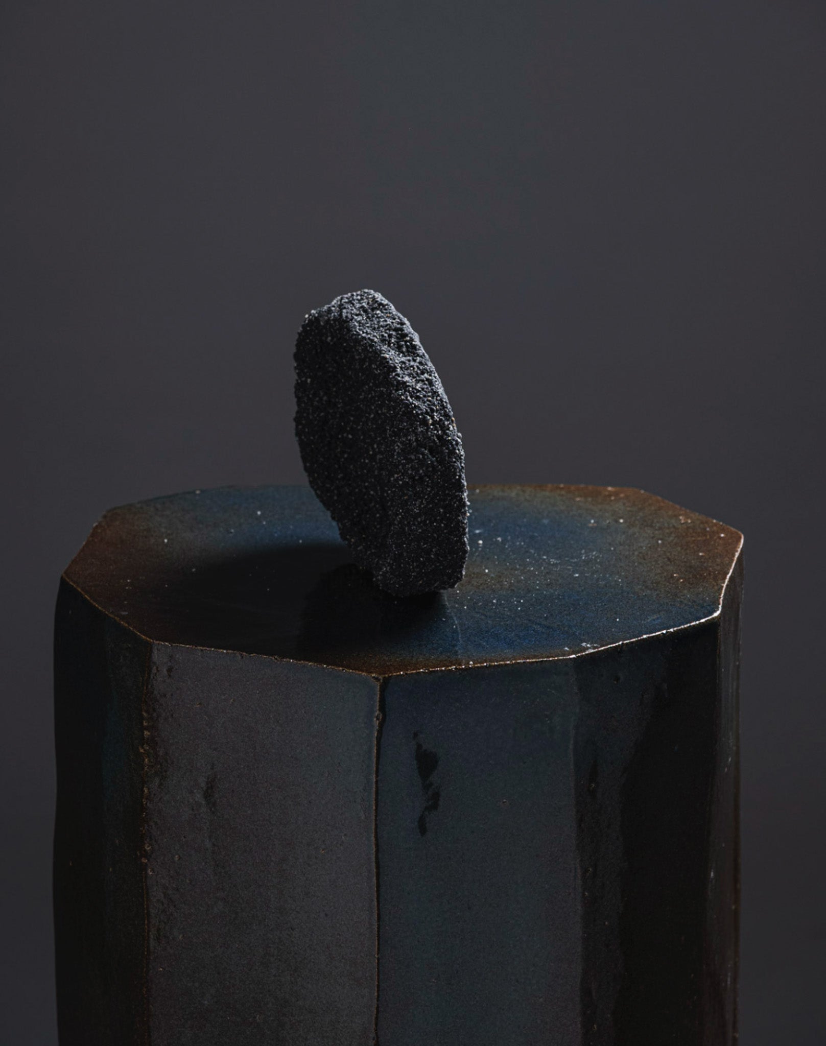 Black sand bowl 02 by Paul Hardy, mixing black sand and ashes, sculpted like volcanic rocks eroded by time.