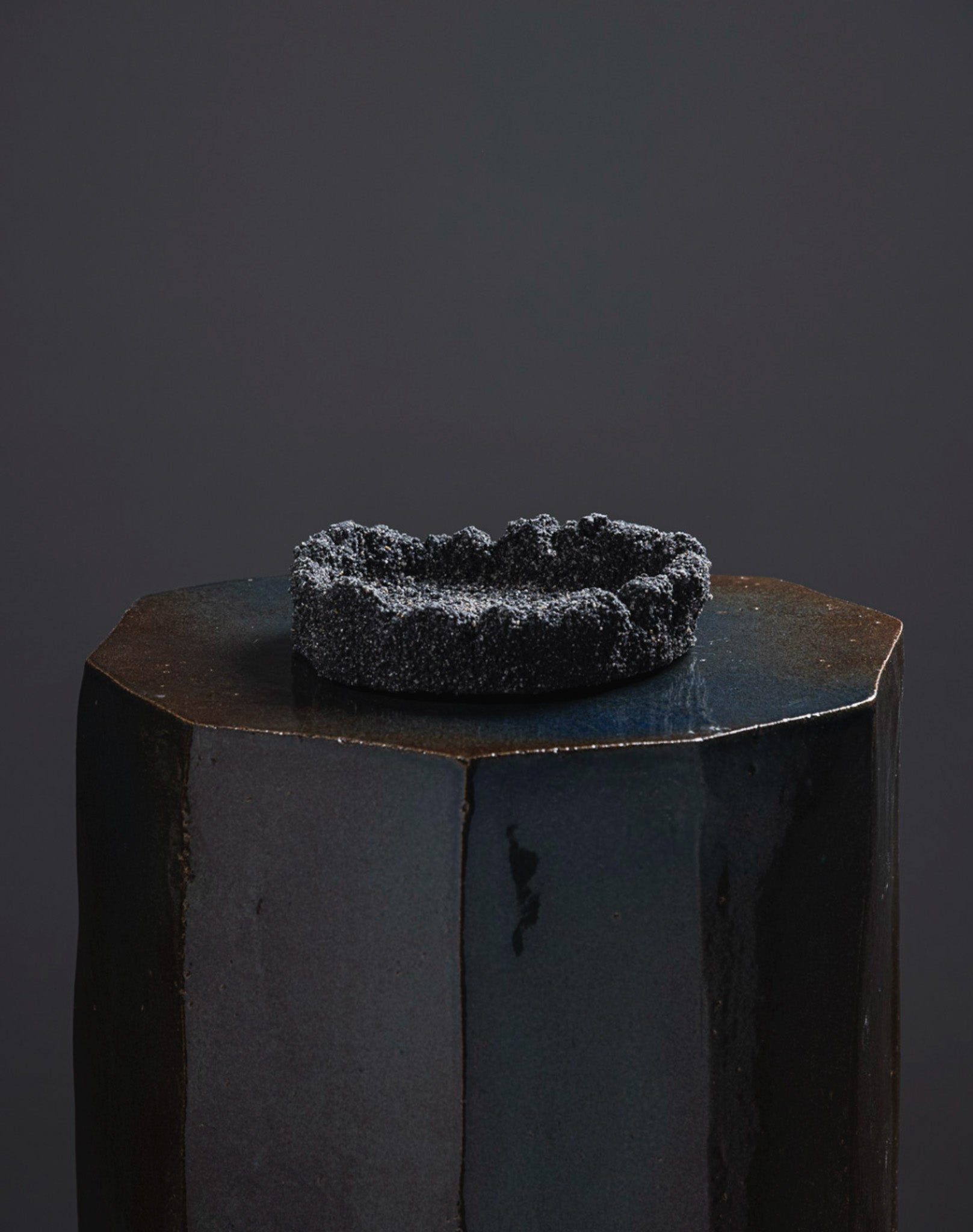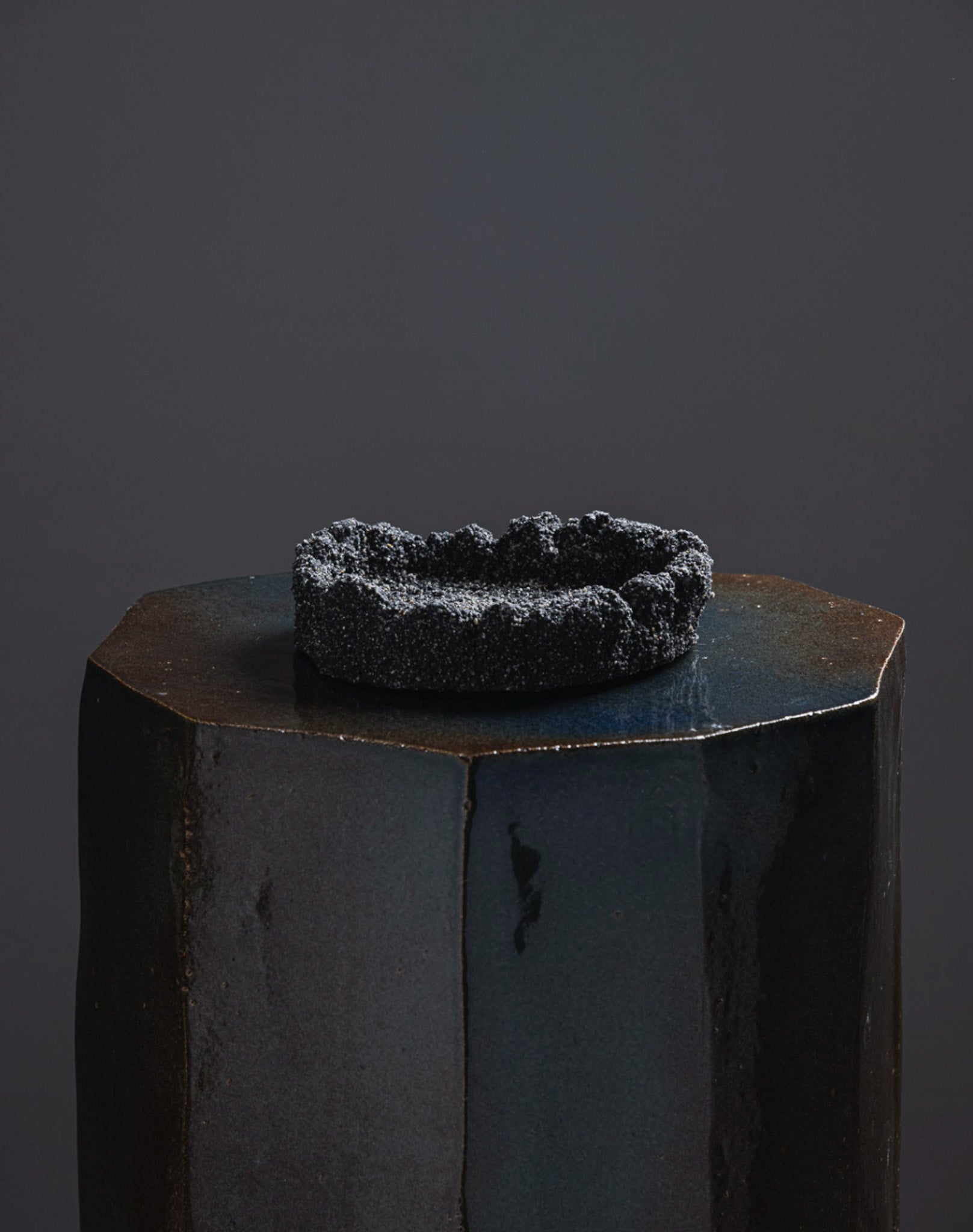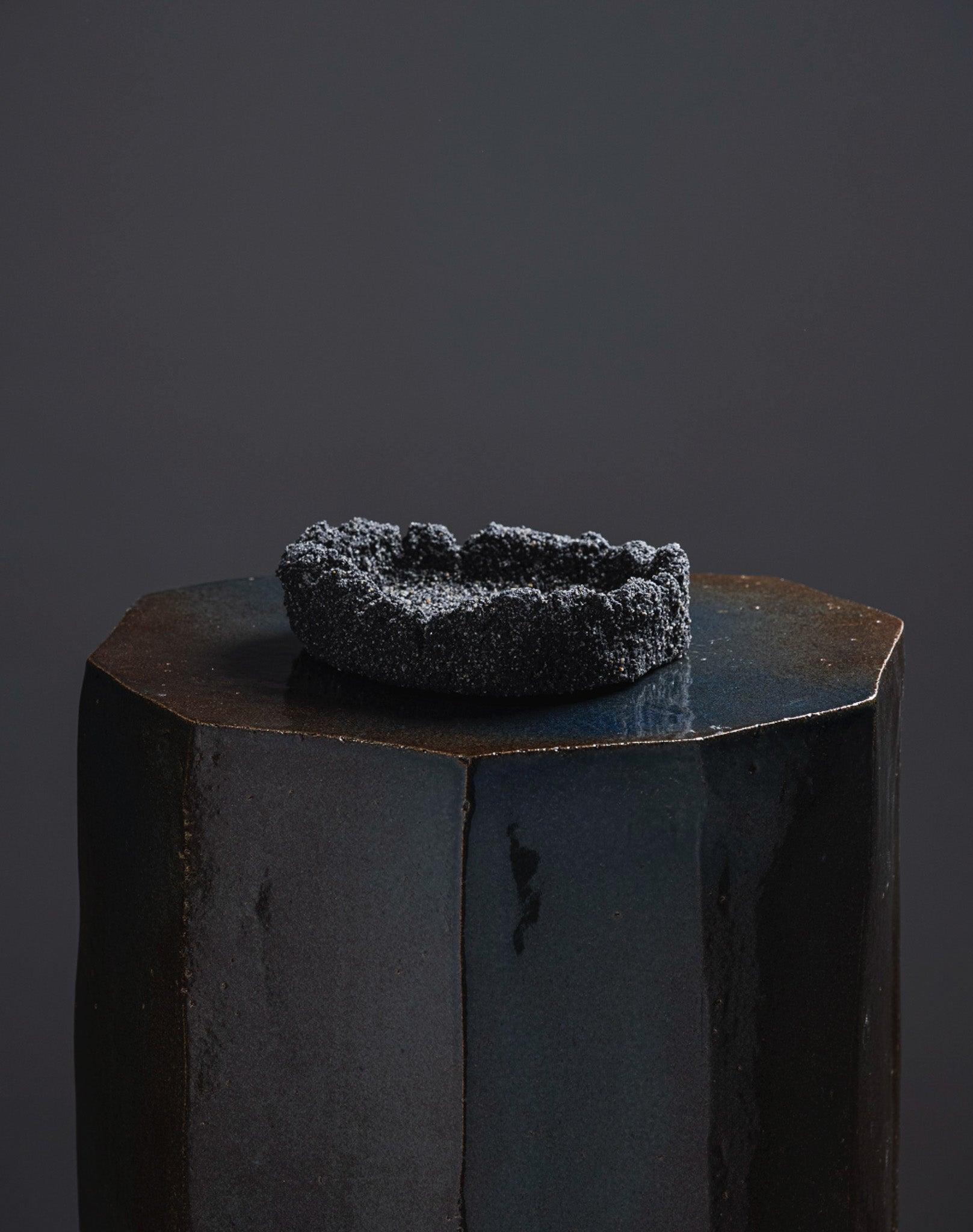 Black sand bowl 04 by Paul Hardy, mixing black sand and ashes, sculpted like volcanic rocks eroded by time.