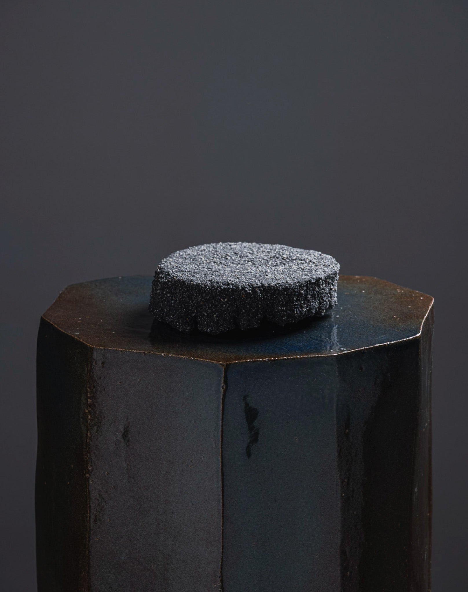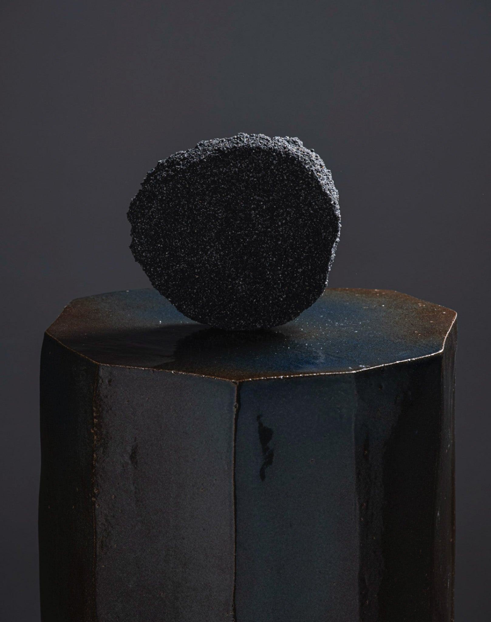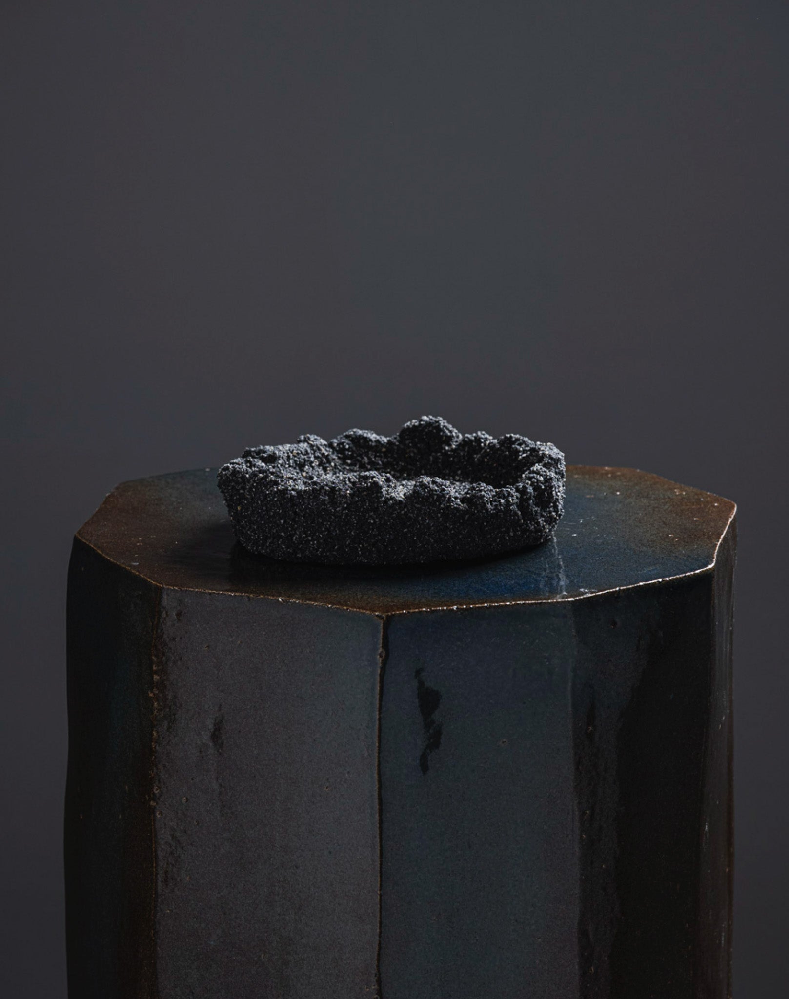 Black sand bowl 04 by Paul Hardy, mixing black sand and ashes, sculpted like volcanic rocks eroded by time.