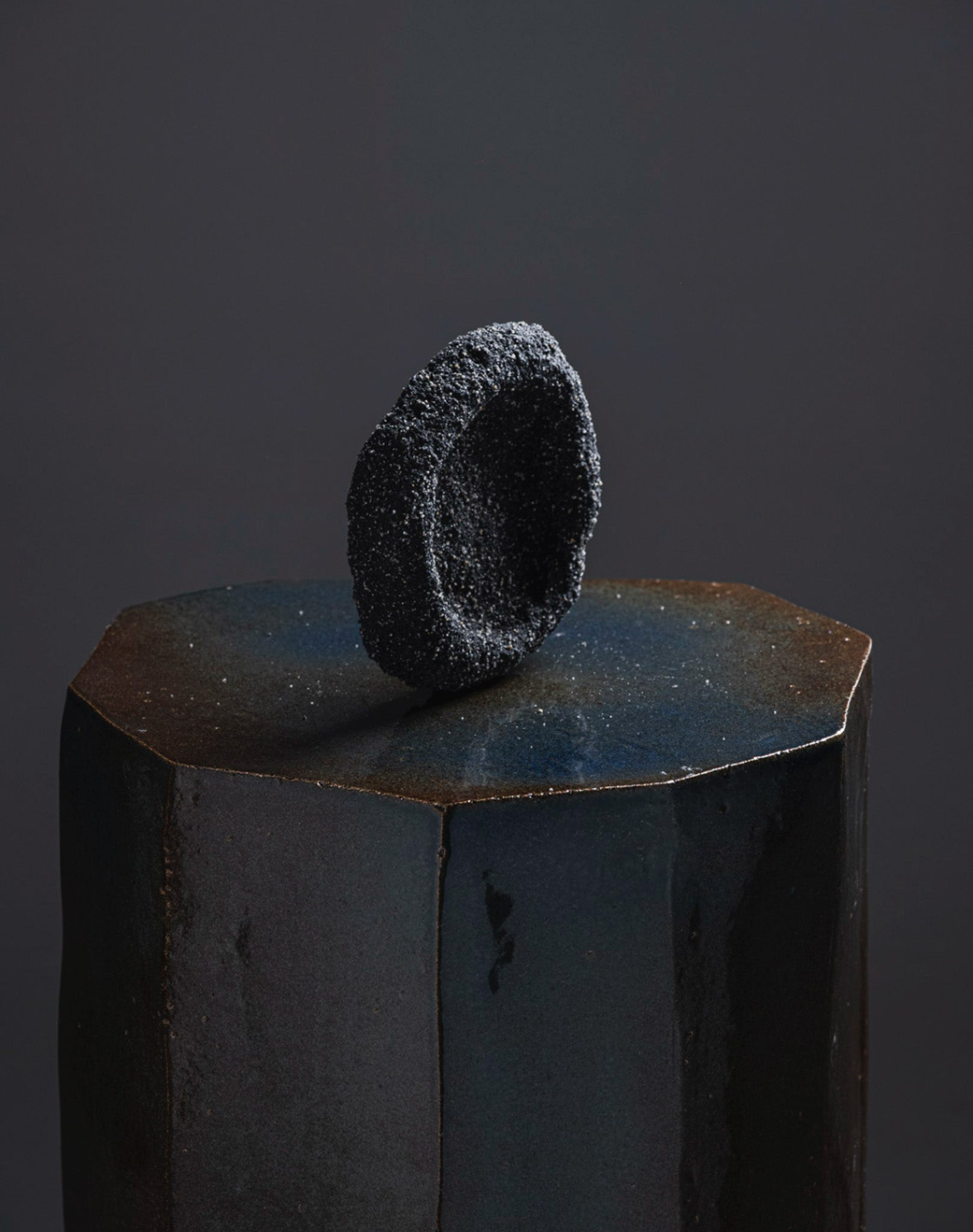 Black sand bowl 05 by Paul Hardy, mixing black sand and ashes, sculpted like volcanic rocks eroded by time.