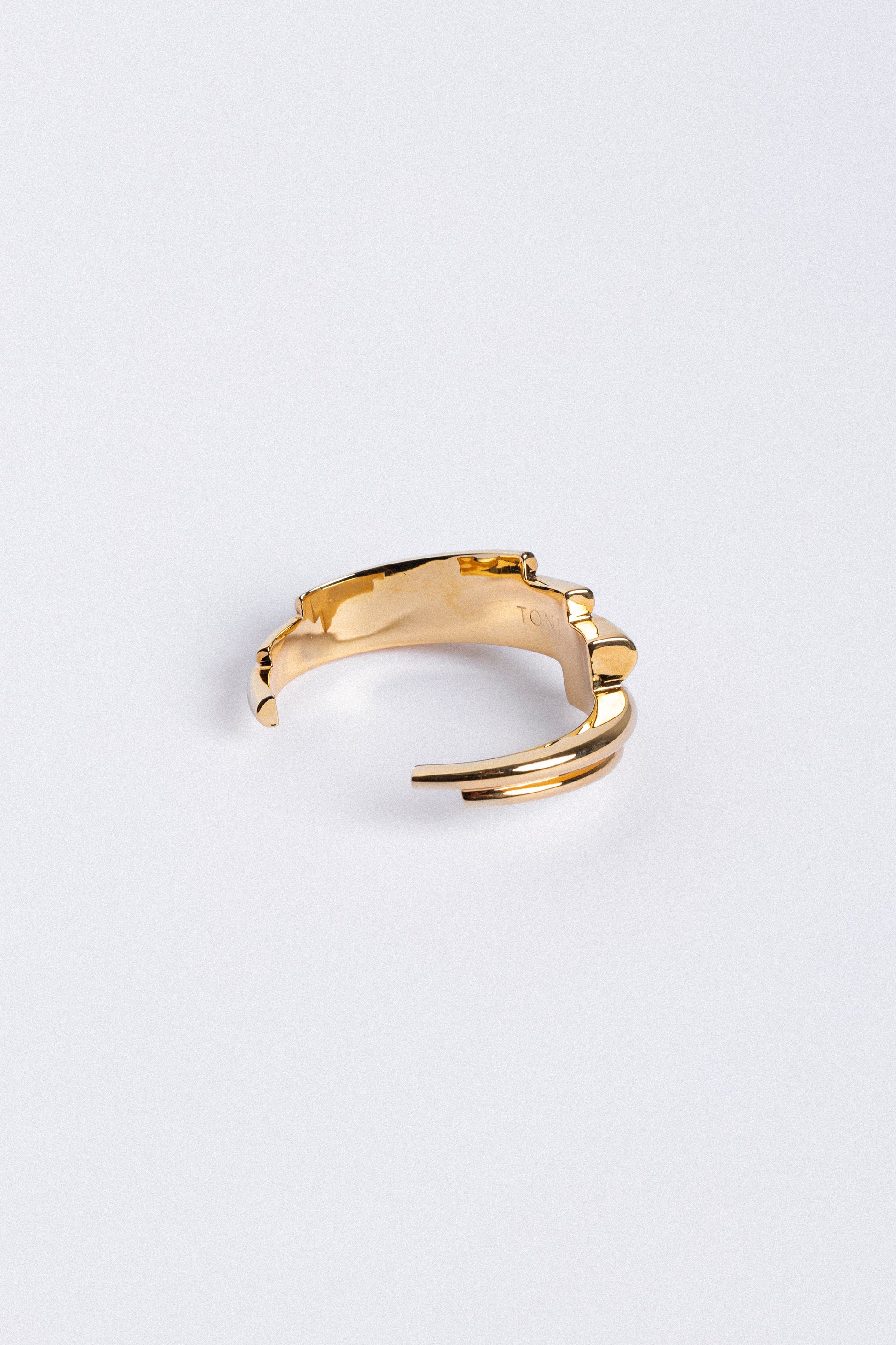 925 sterling silver bracelet with five rounded bands, gold plated, by the designer jeweler Toni Dahan.