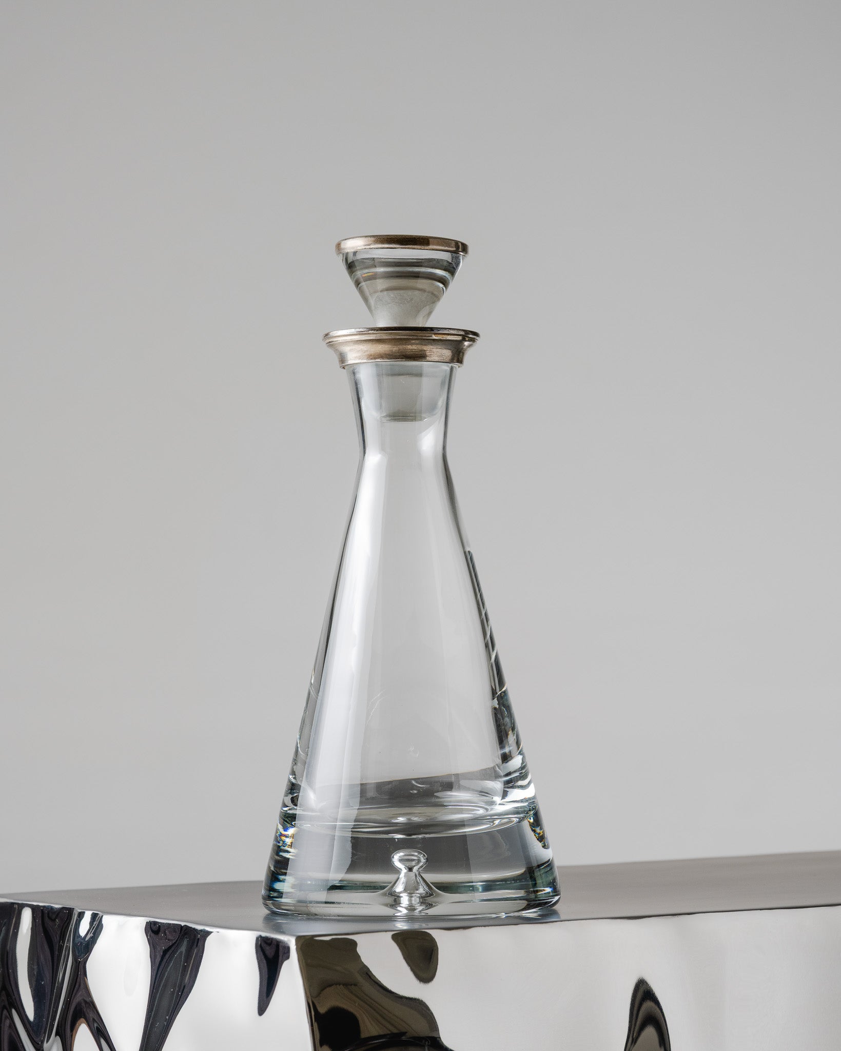 MODERN GLASS AND SILVER-PLATED METAL DECANTER, 2000s