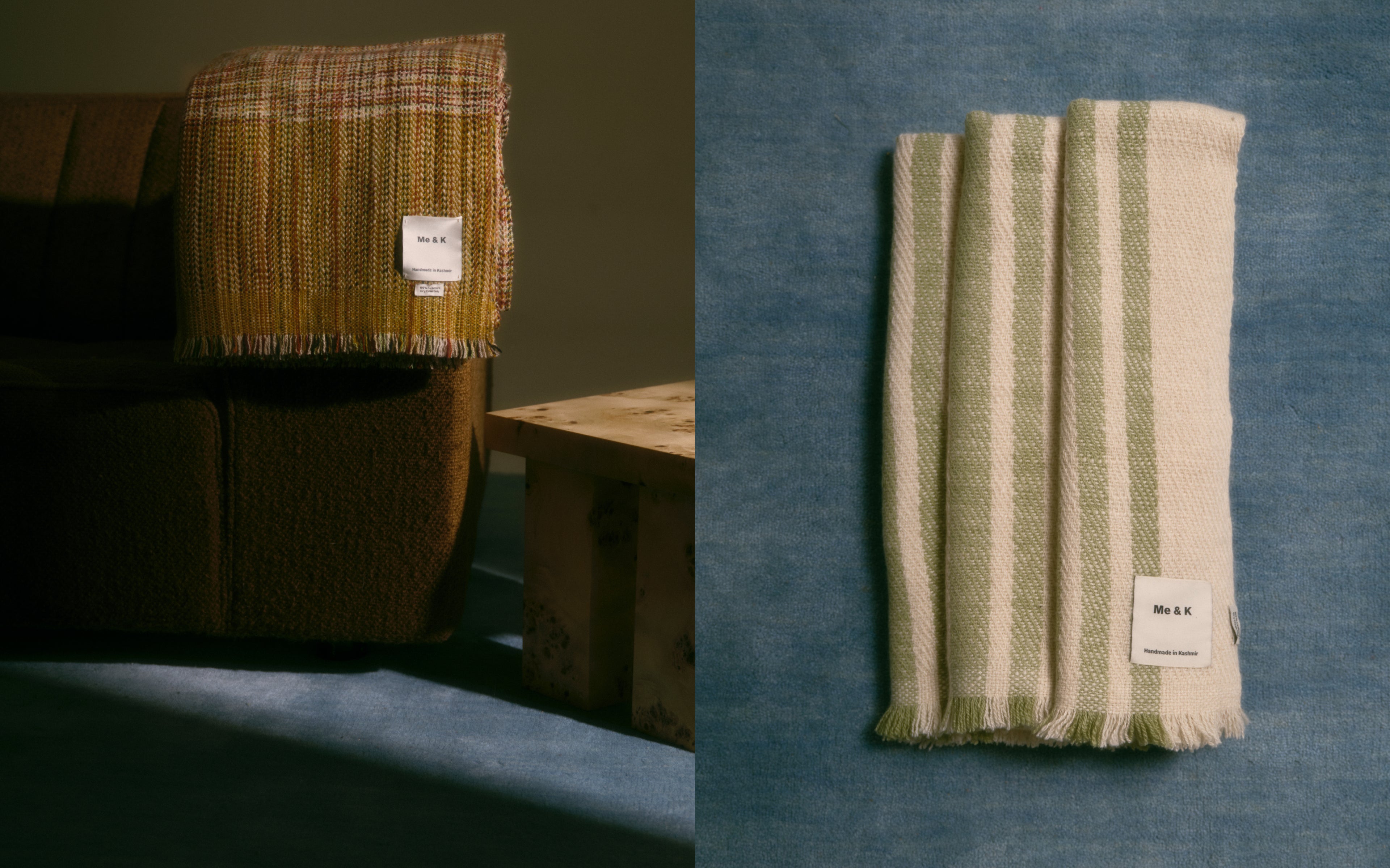 KADRI MUJTABA, A FIFTH-GENERATION WORKSHOP OWNER WEAVING CASHMERE IN KASHMIR, AND MAEVA ELFASSI, A PARIS-BASED ARTISTIC DIRECTOR. TOGETHER, THEY CREATE HANDWOVEN CASHMERE THROWS AND BLANKETS THAT BLEND HERITAGE AND TIMELESSNESS, OFFERING A QUIET, UNDER-SATED LUXURY EMBRACED BY THE WORLD’S MOST DISCERNING FASHION AND INTERIOR HOUSES.