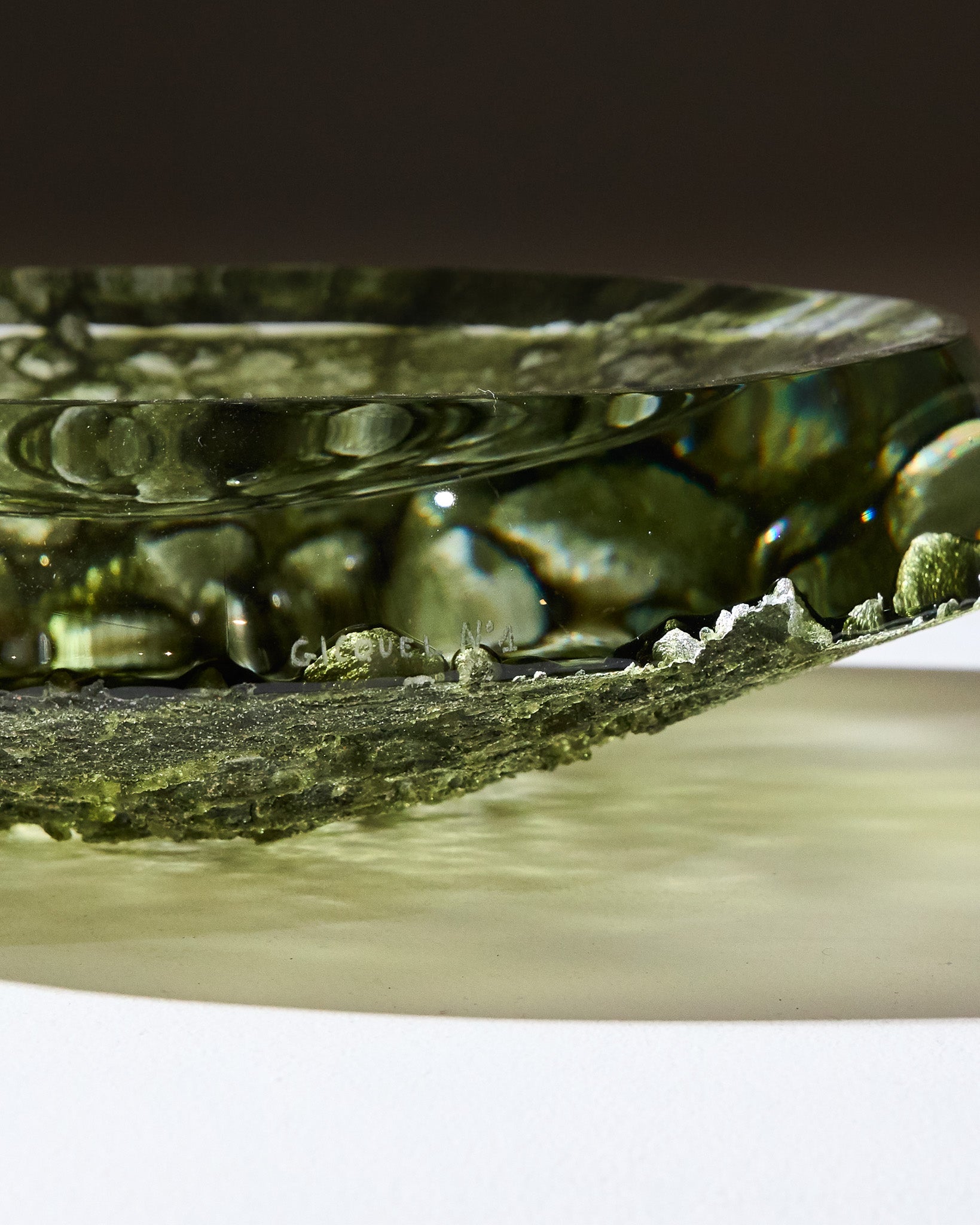 Green centerpiece by Mathieu Gicquel. Numbered piece 1 and signed Gicquel.