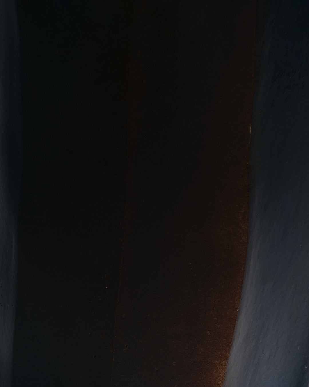 Hand-carved ceramic side table with a geometric octagonal shape, made in the Project 213A ceramic workshop and finished with a custom glaze. Each piece is unique due to its handcrafted nature; shapes and shades may slightly vary.