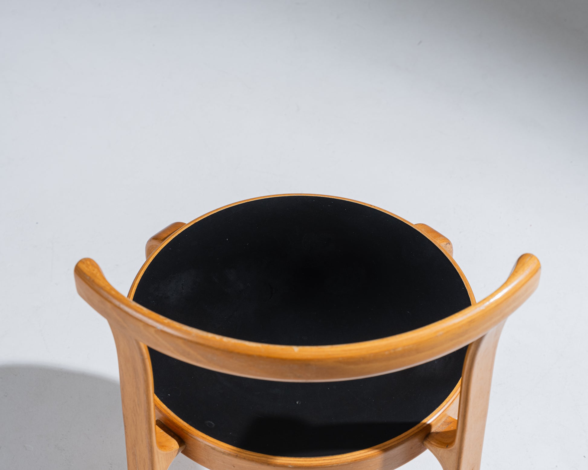 Round-seated wooden chair corresponding to the 8000 model by Rud Thygesen and Johnny Sorensen for Magnus Olesen in Denmark, in the 1980s.