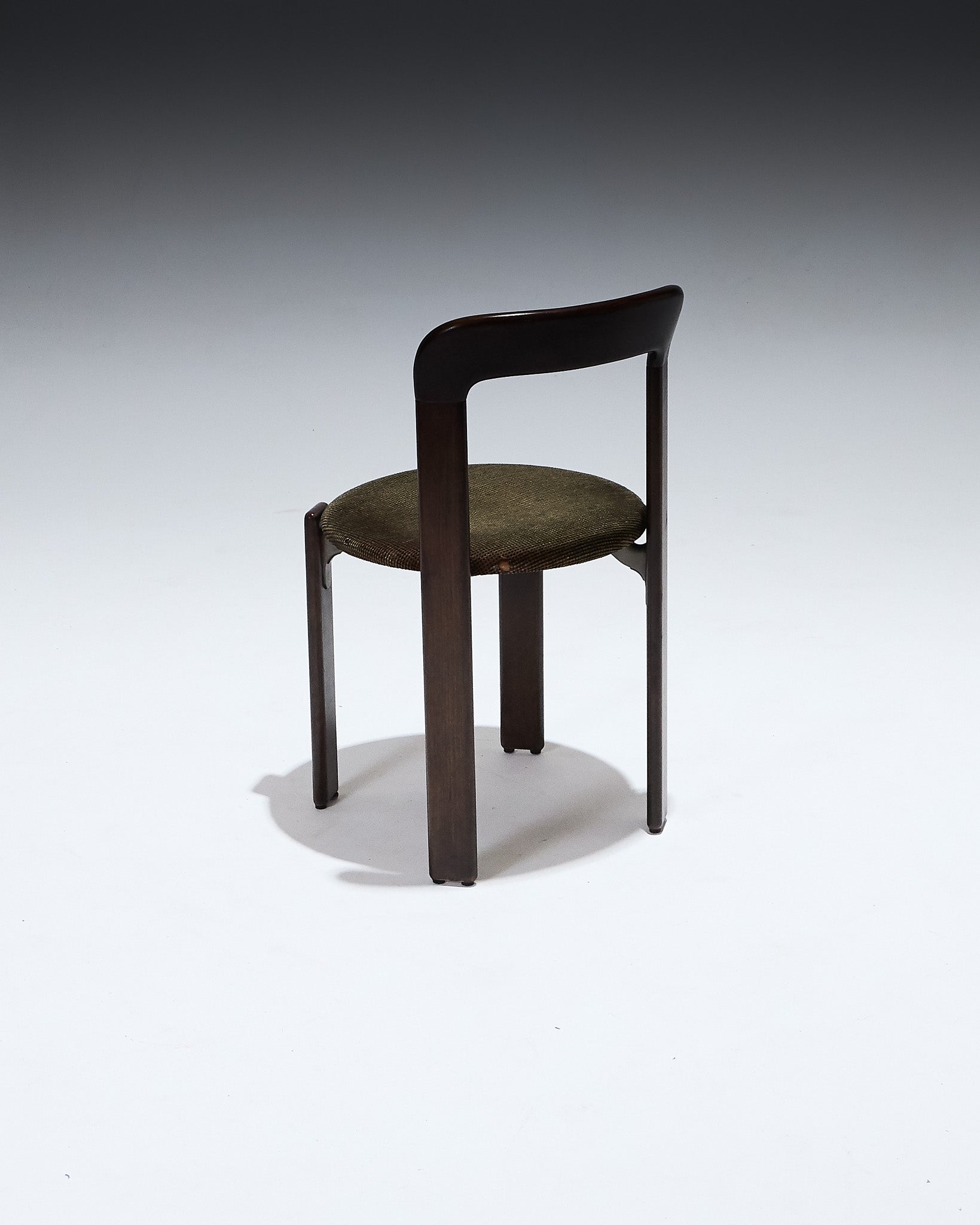 Bruno Rey Chair model by Bruno Rey in the 1970s. Solid stained beech frame. Circular seat upholstered in fabric, original padding. One-piece curved backrest.