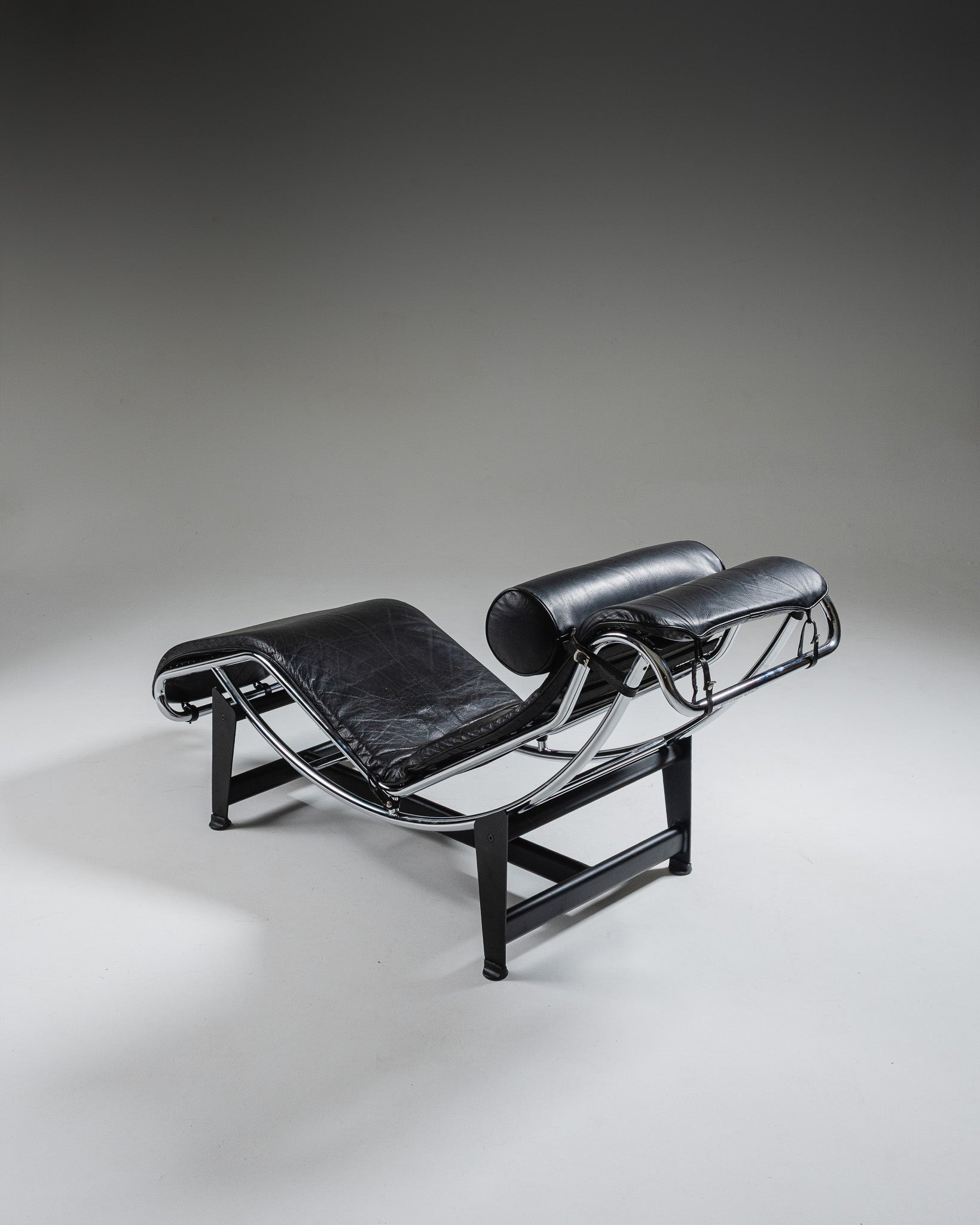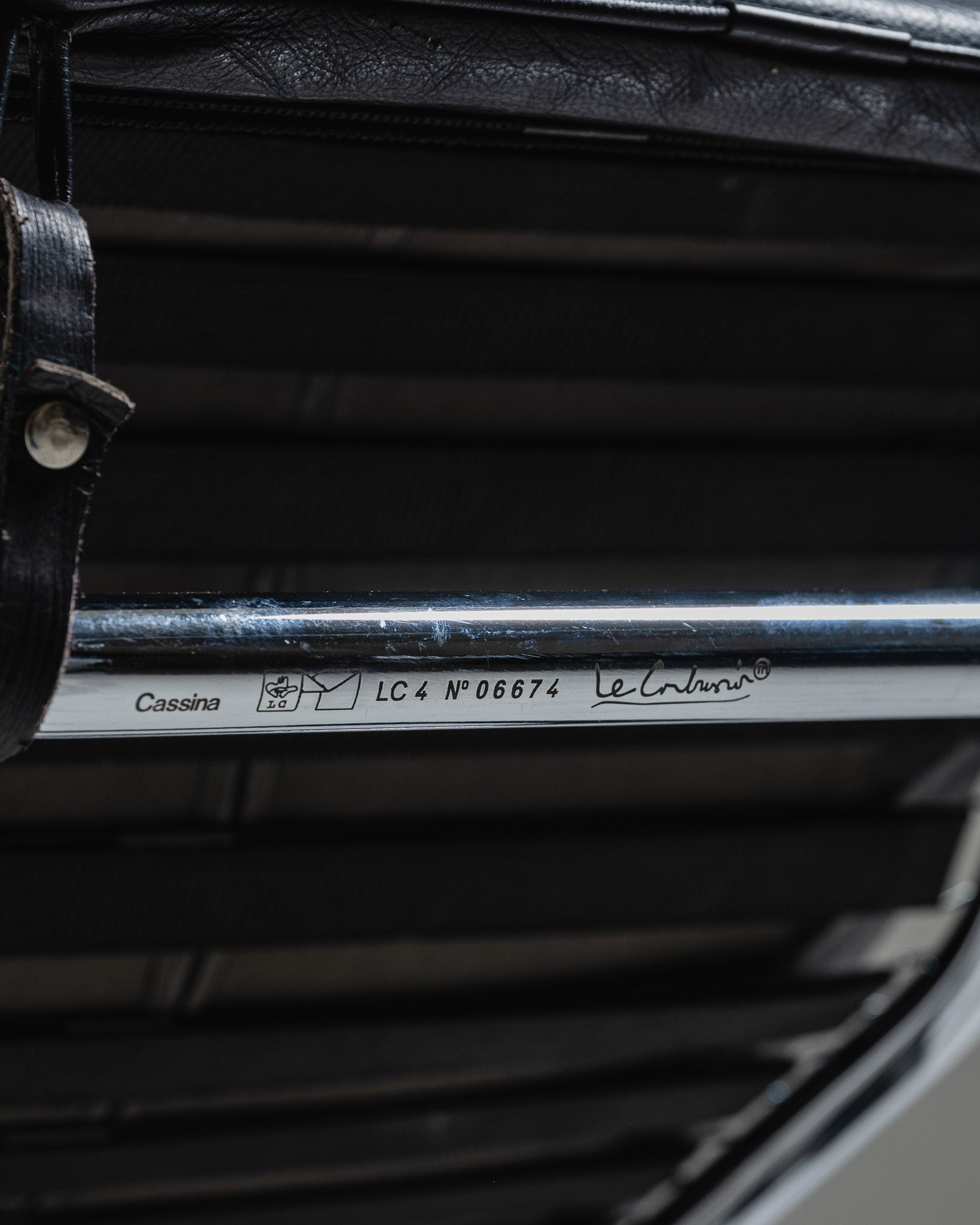 LC4 Le Corbusier chaise longue from the 1960s. An iconic example of modern design, the LC4 chaise longue, also known as the "resting machine," was designed in 1928 by Le Corbusier in collaboration with Charlotte Perriand and Pierre Jeanneret. It has been produced by Cassina since the 1960s.