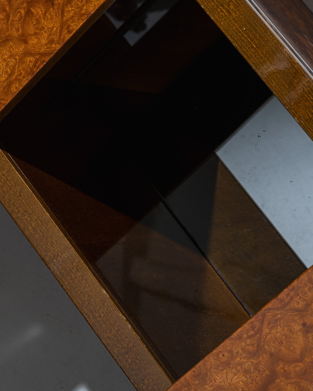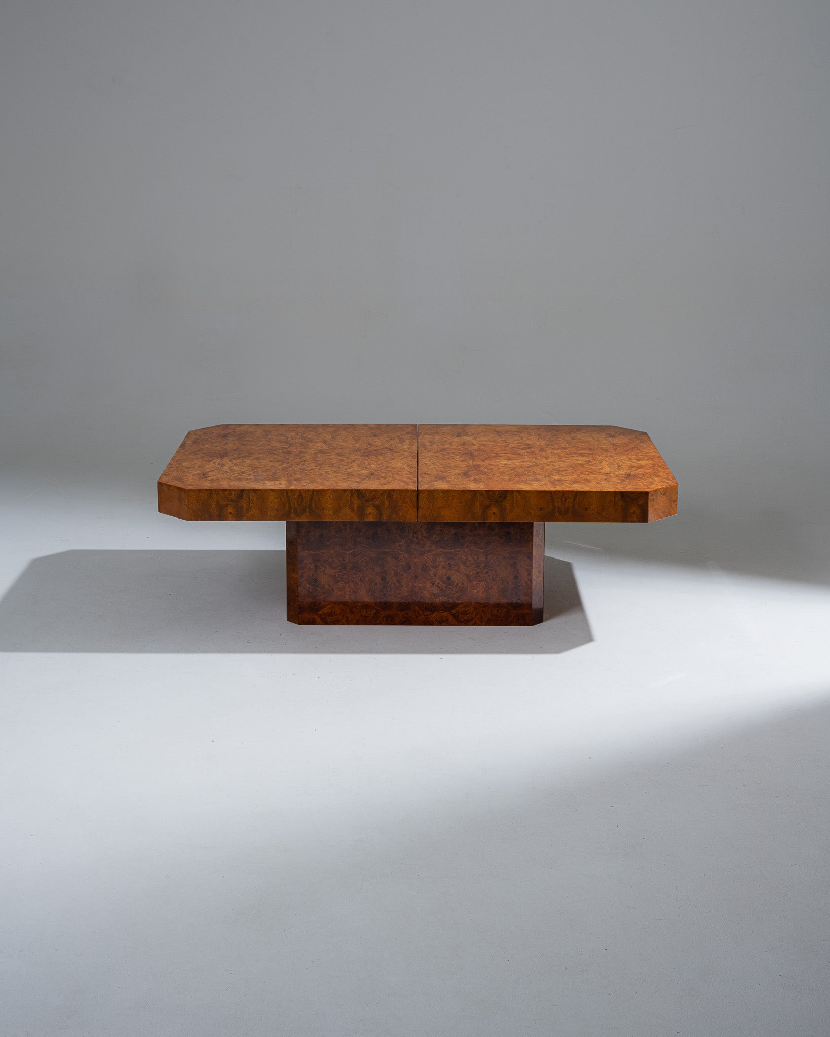 Burl elm trunk-style coffee table, in the manner of Willy Rizzo’s 1970s work.