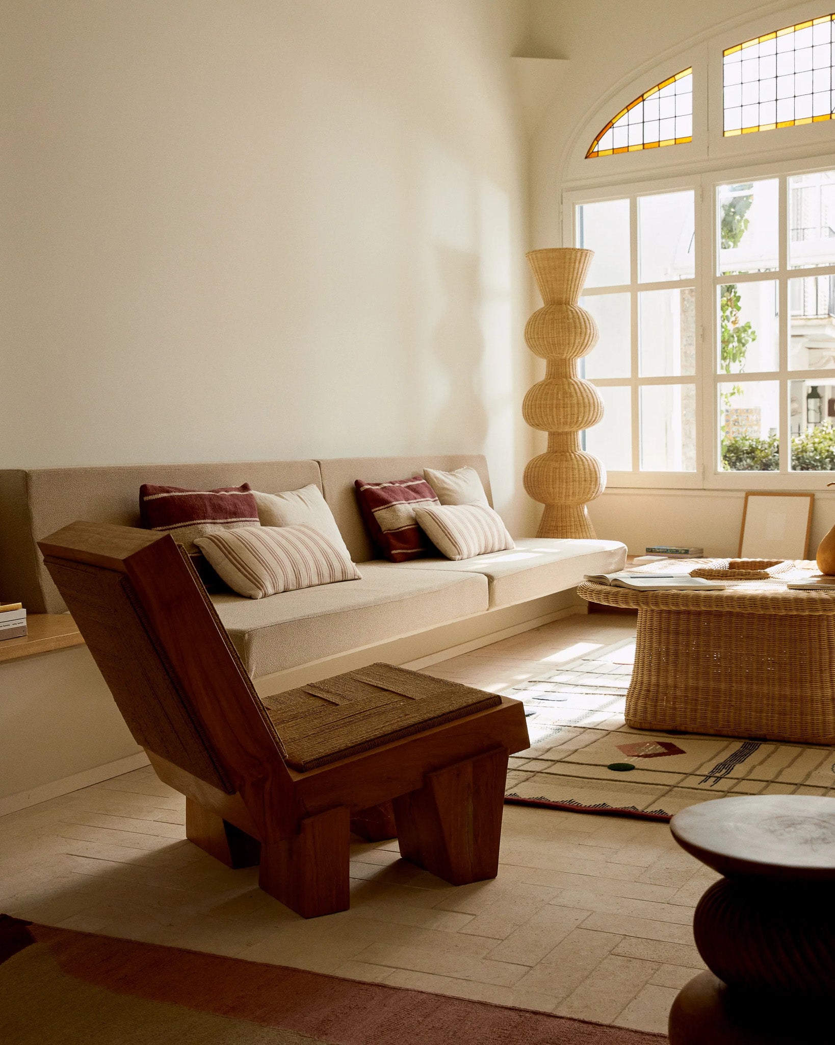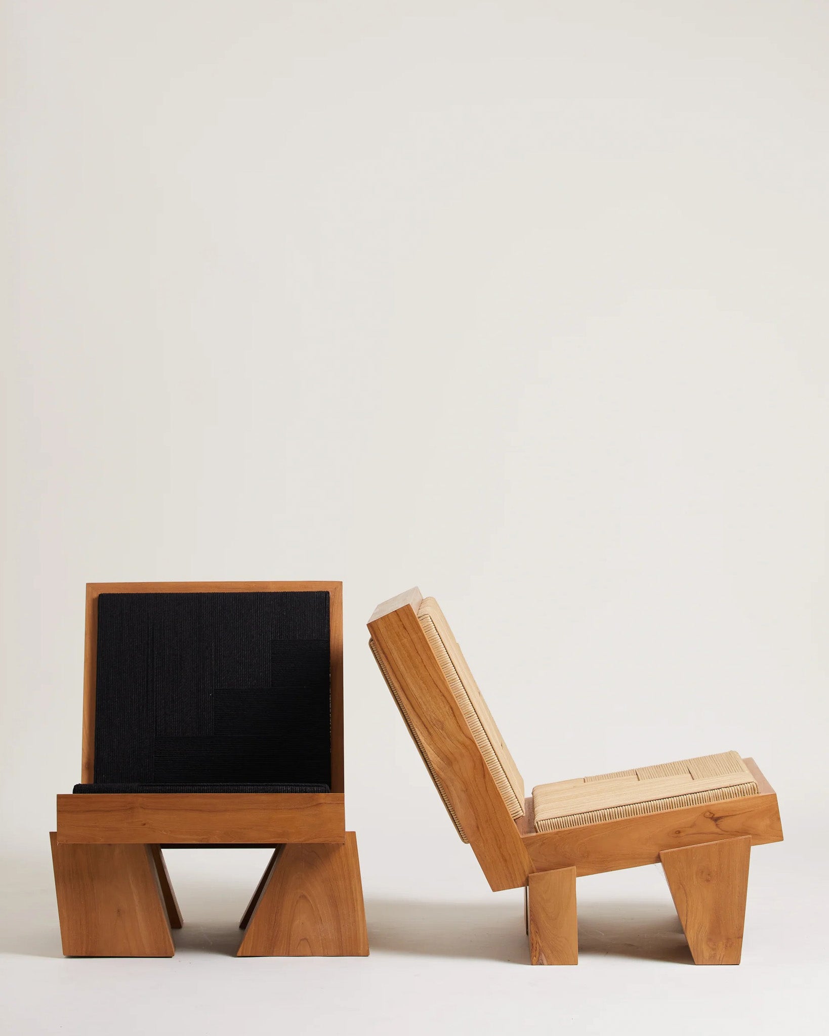 The Block armchair is a handcrafted piece made from reclaimed solid teak. Its seat and back, finely woven from loom rope, add an artistic touch to its functional design. The unique geometry of its legs gives it a sculptural appearance from every angle. A perfect balance between durability and aesthetics.