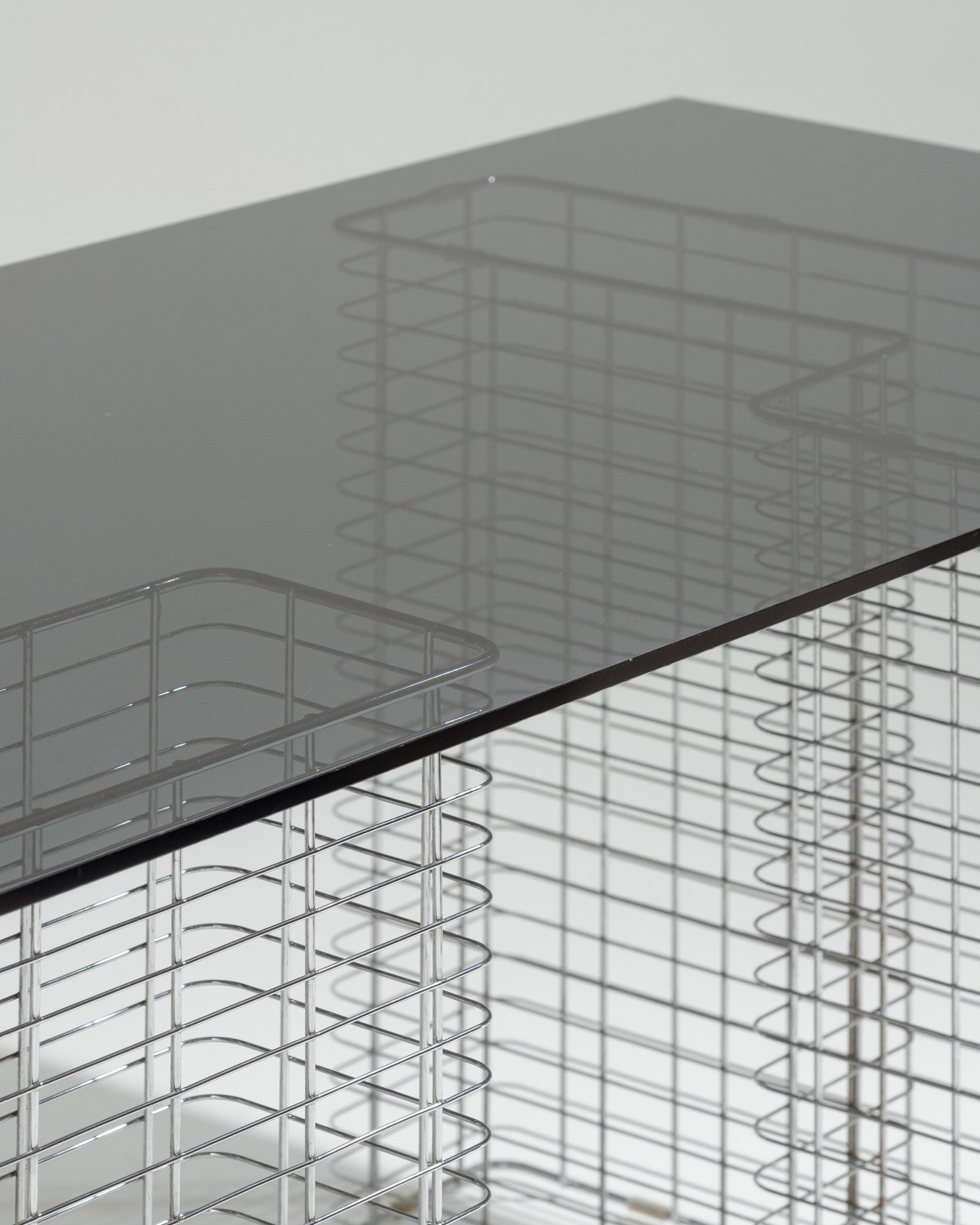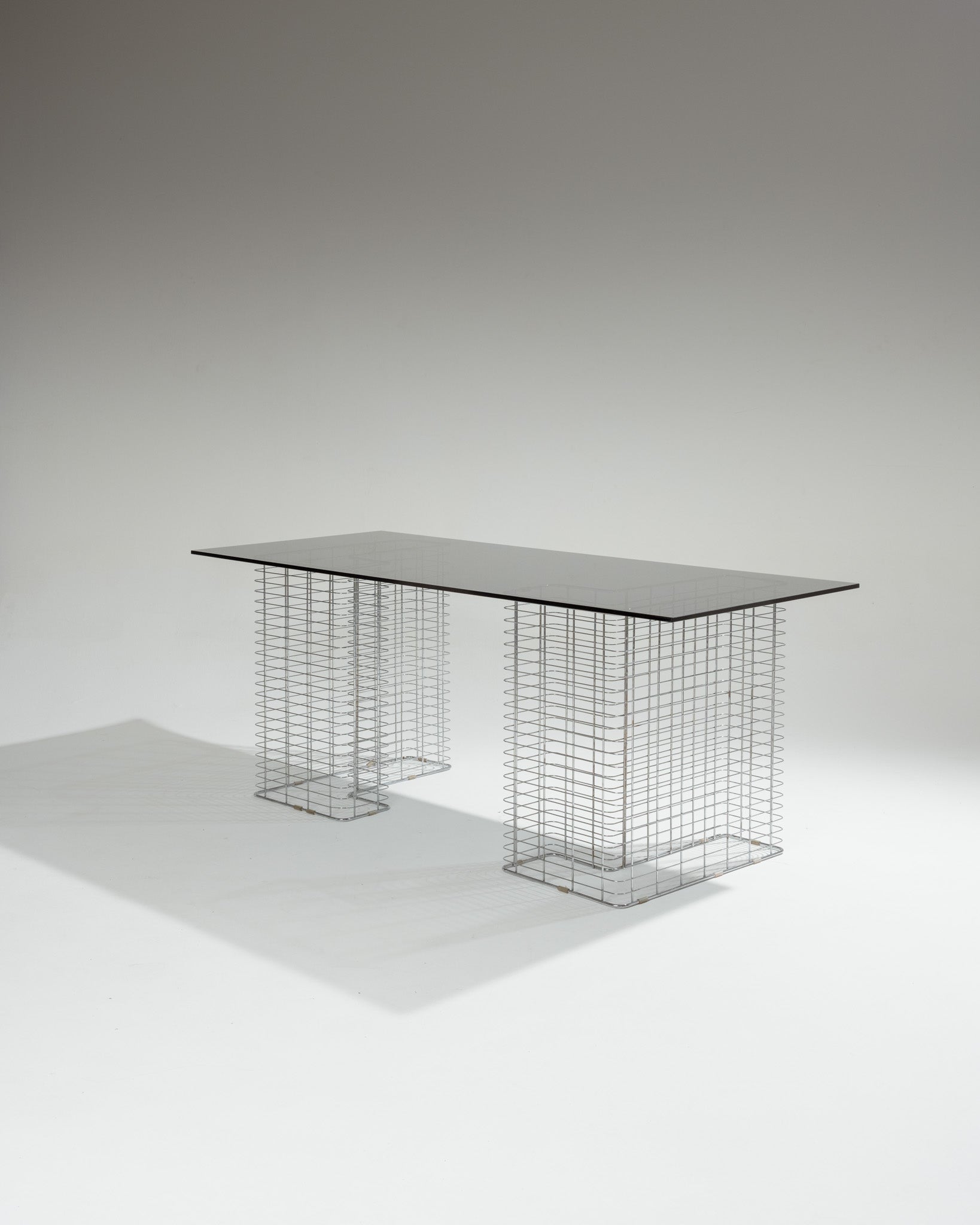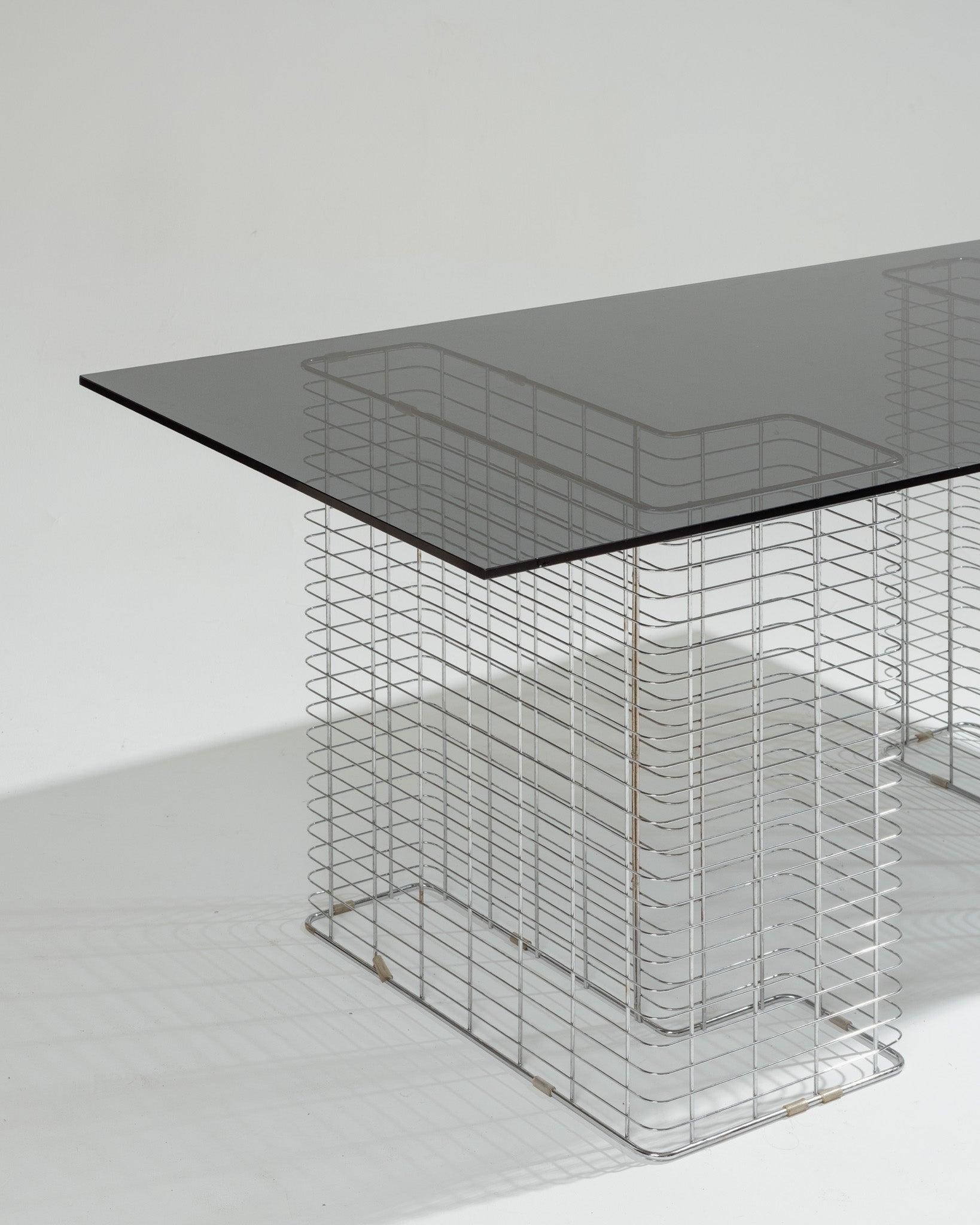 Large wire desk in glass and metal, Terence Conran, 1980s