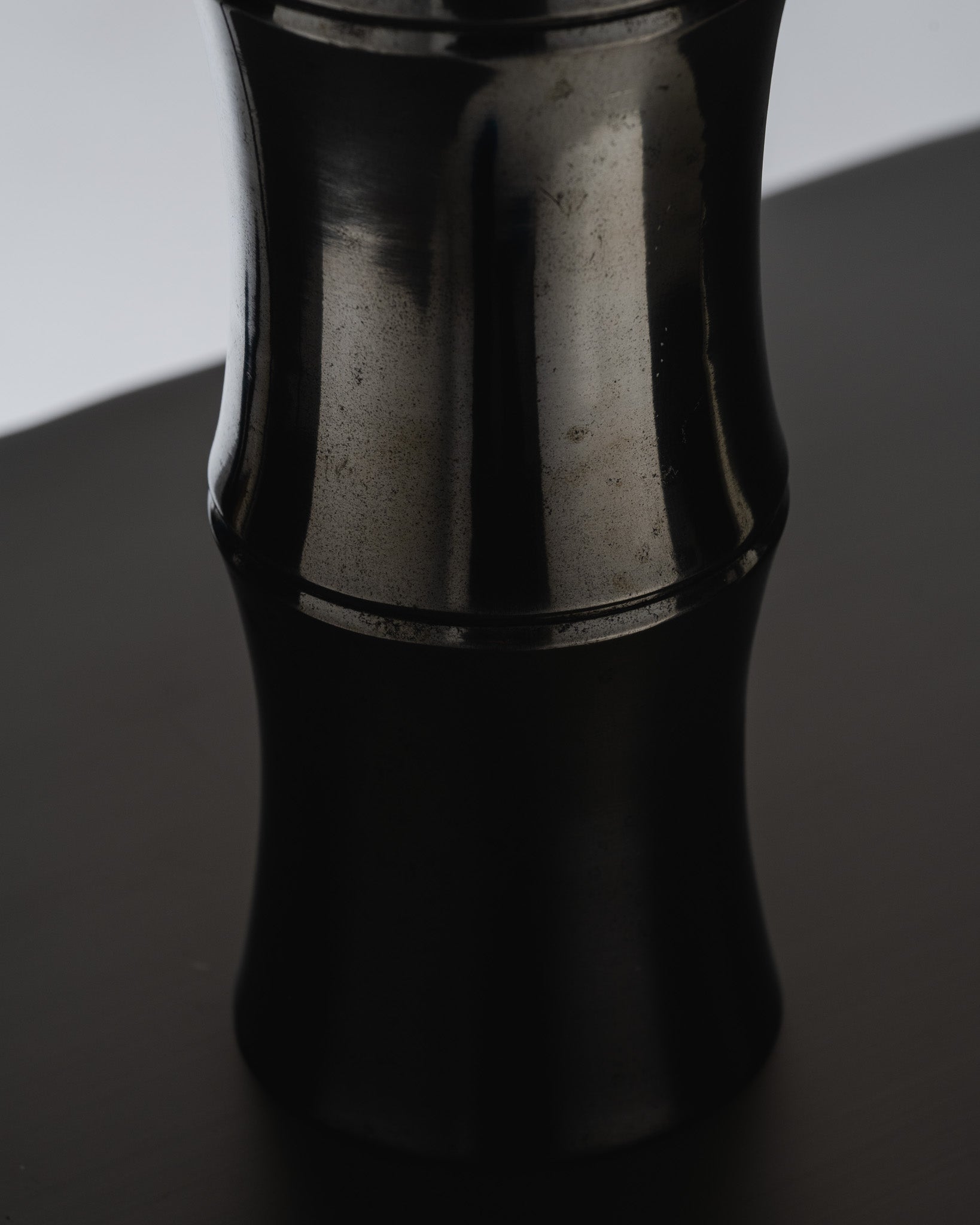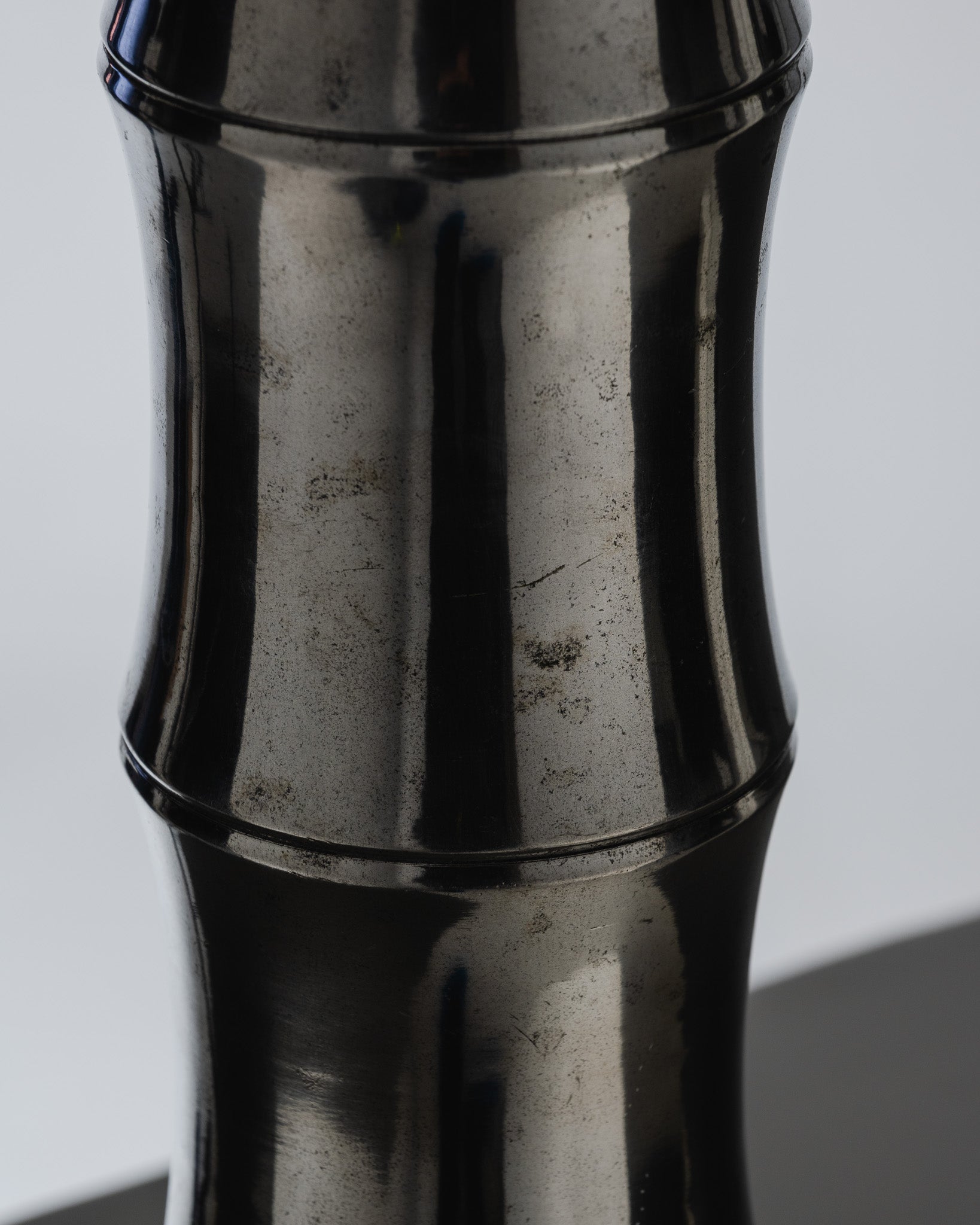 Large metal vase in the shape of a bamboo, 1970s. An emblematic piece of the modernist style, its vertical design, punctuated by edges, combines organic and architectural forms. Good overall condition.