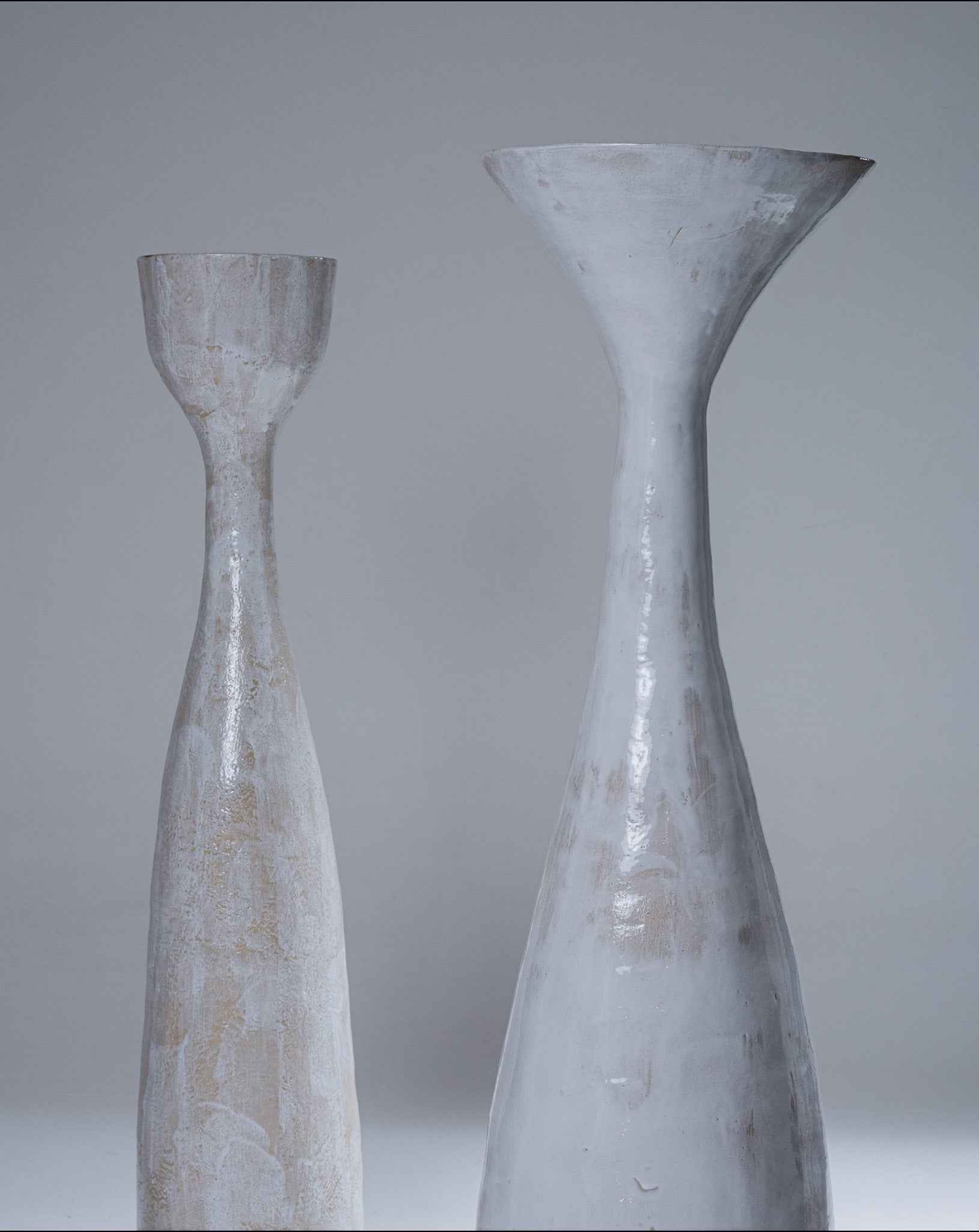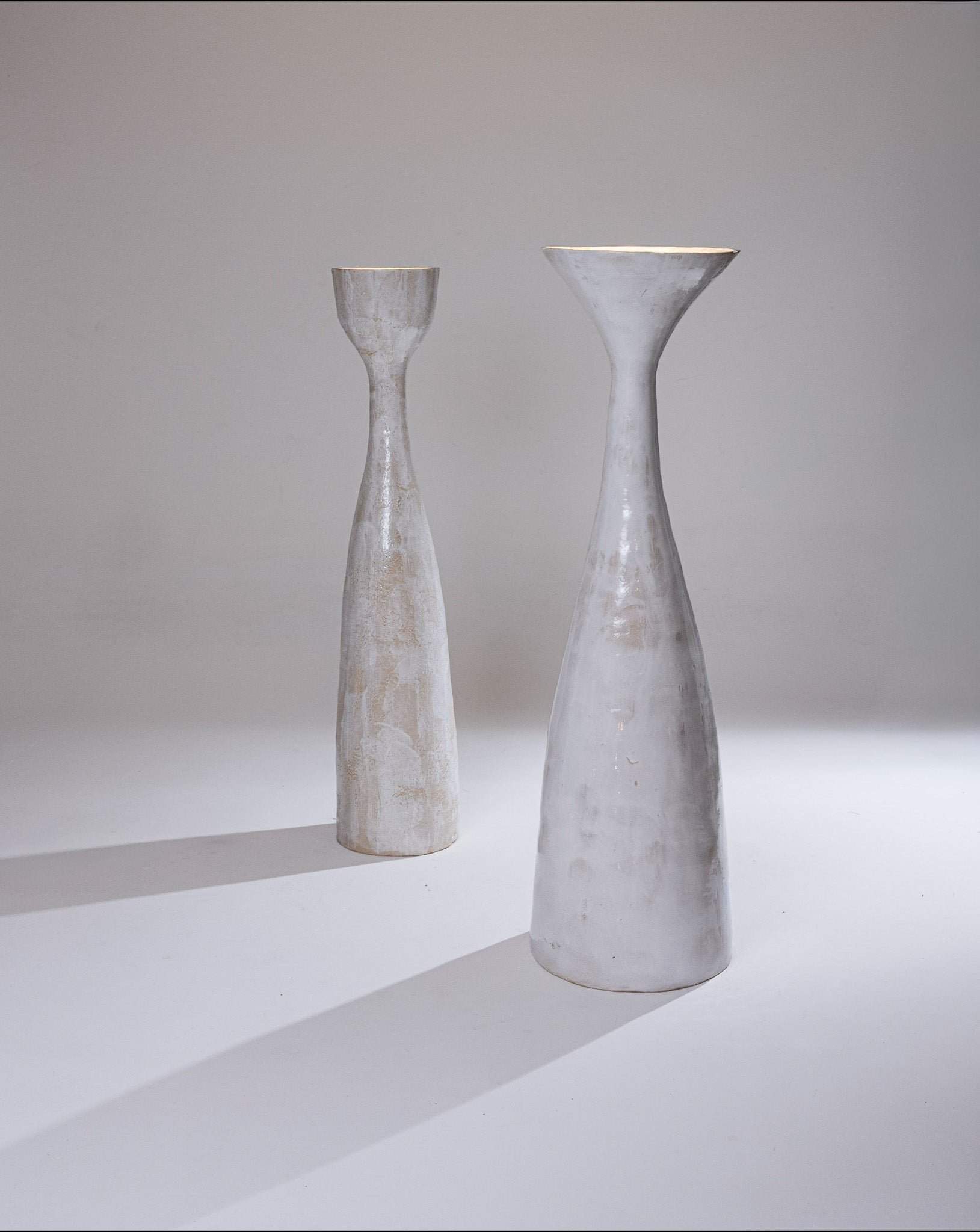Large MELIDES FLOOR LIGHT No3 handcrafted ceramic floor lamp, made in the Project 213A ceramics workshop in 2024. Each piece is unique due to its handcrafted nature; shapes and shades vary slightly.