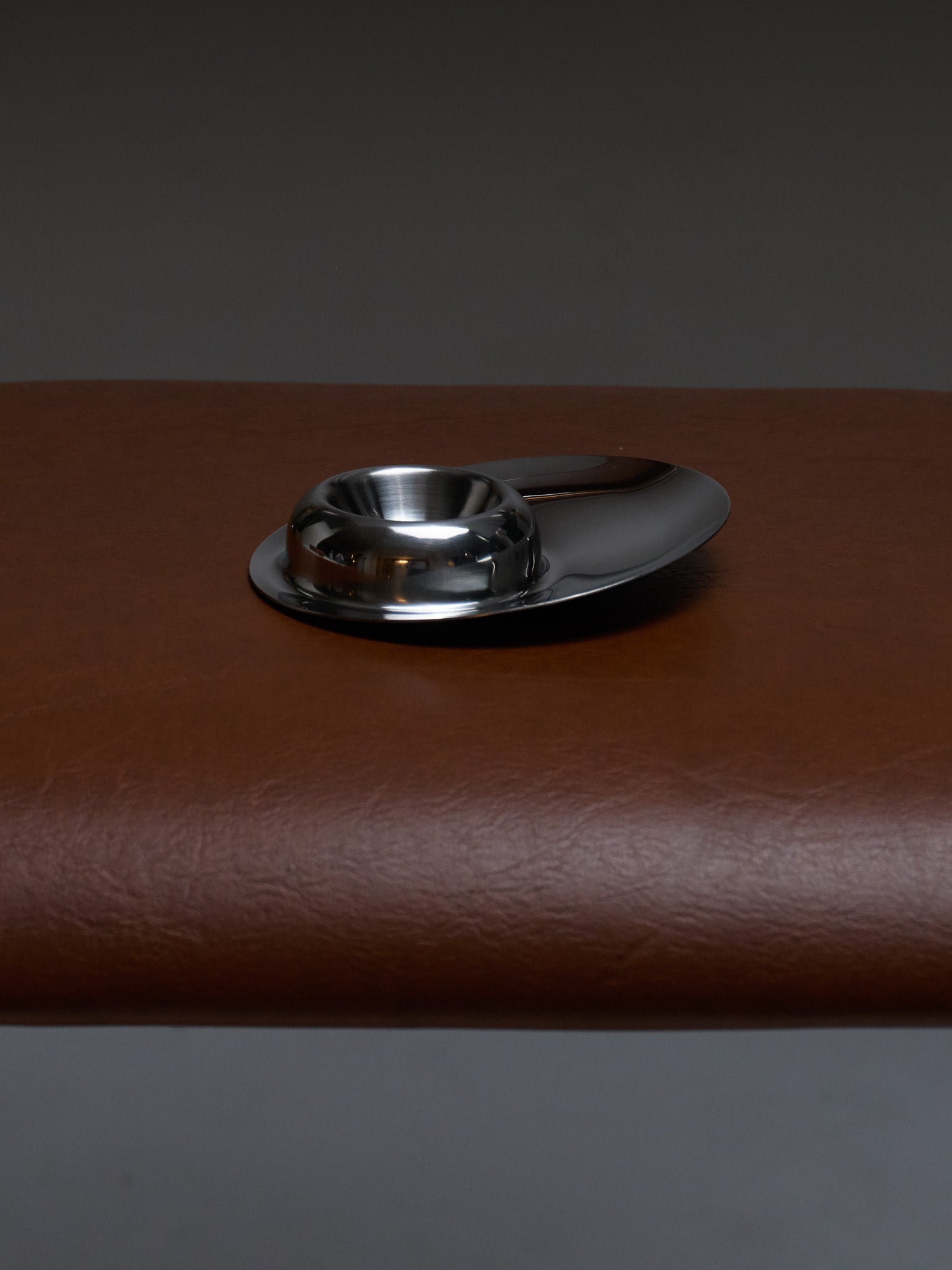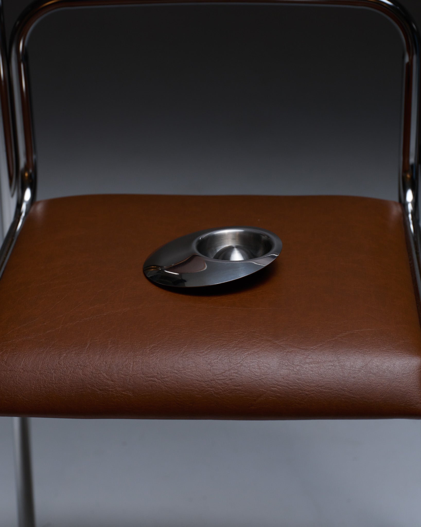 Designer stainless steel egg cups. The oval shape and rounded edges evoke the space-age style of the 1970s. Excellent condition.