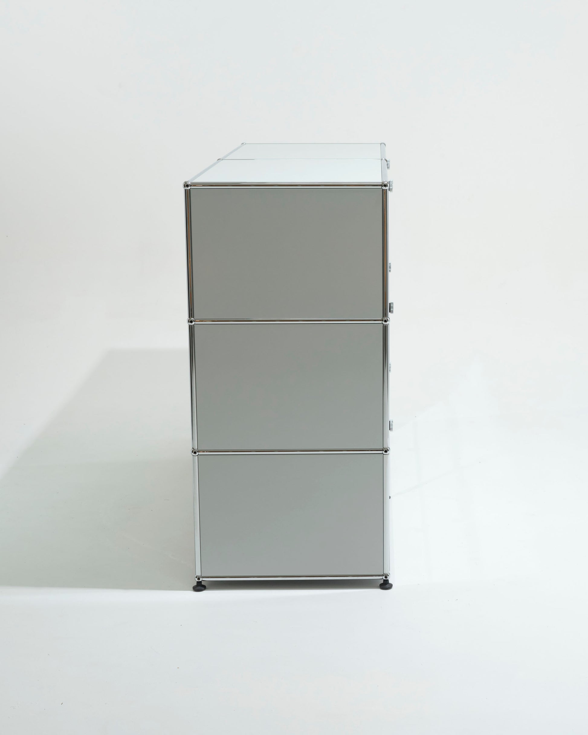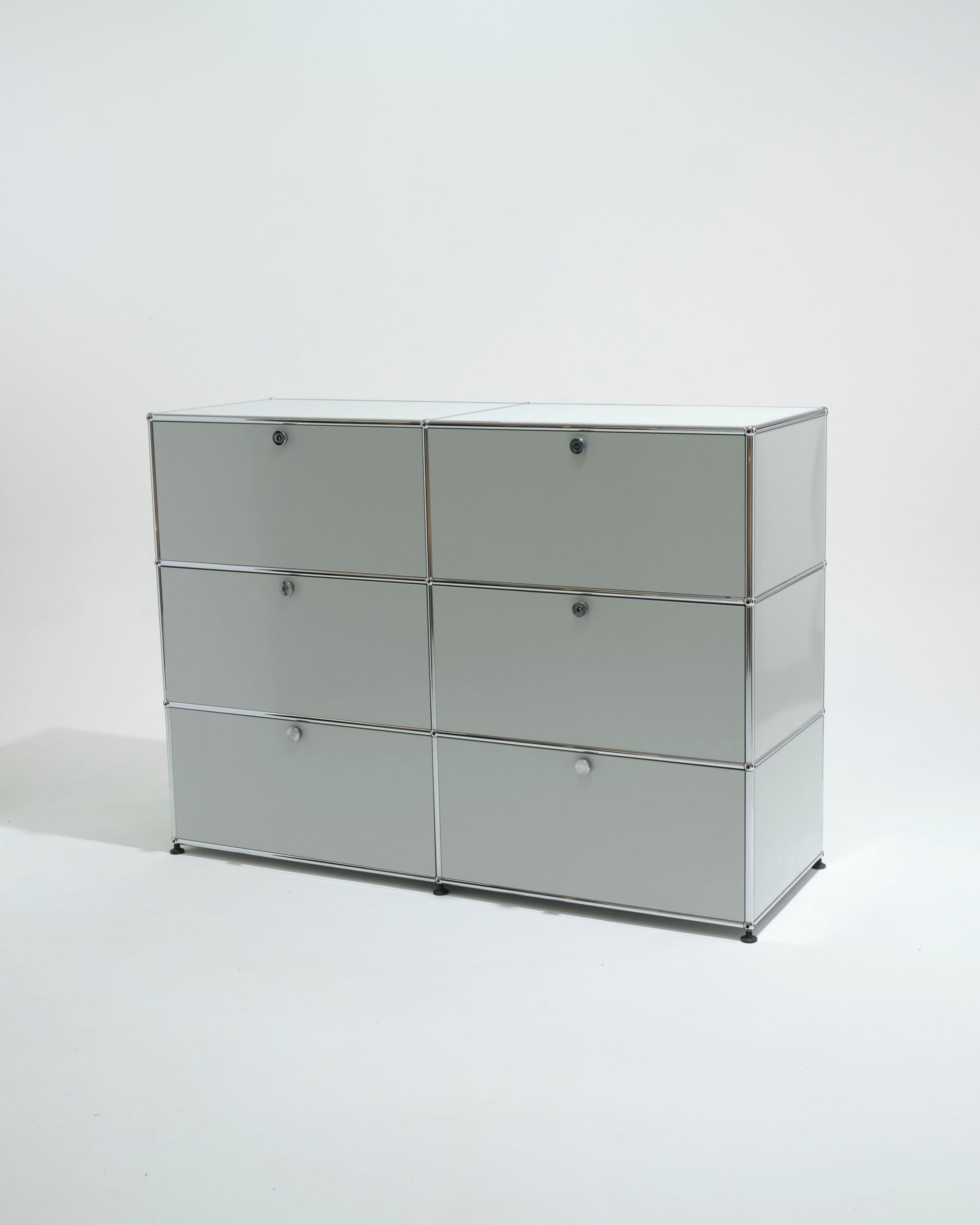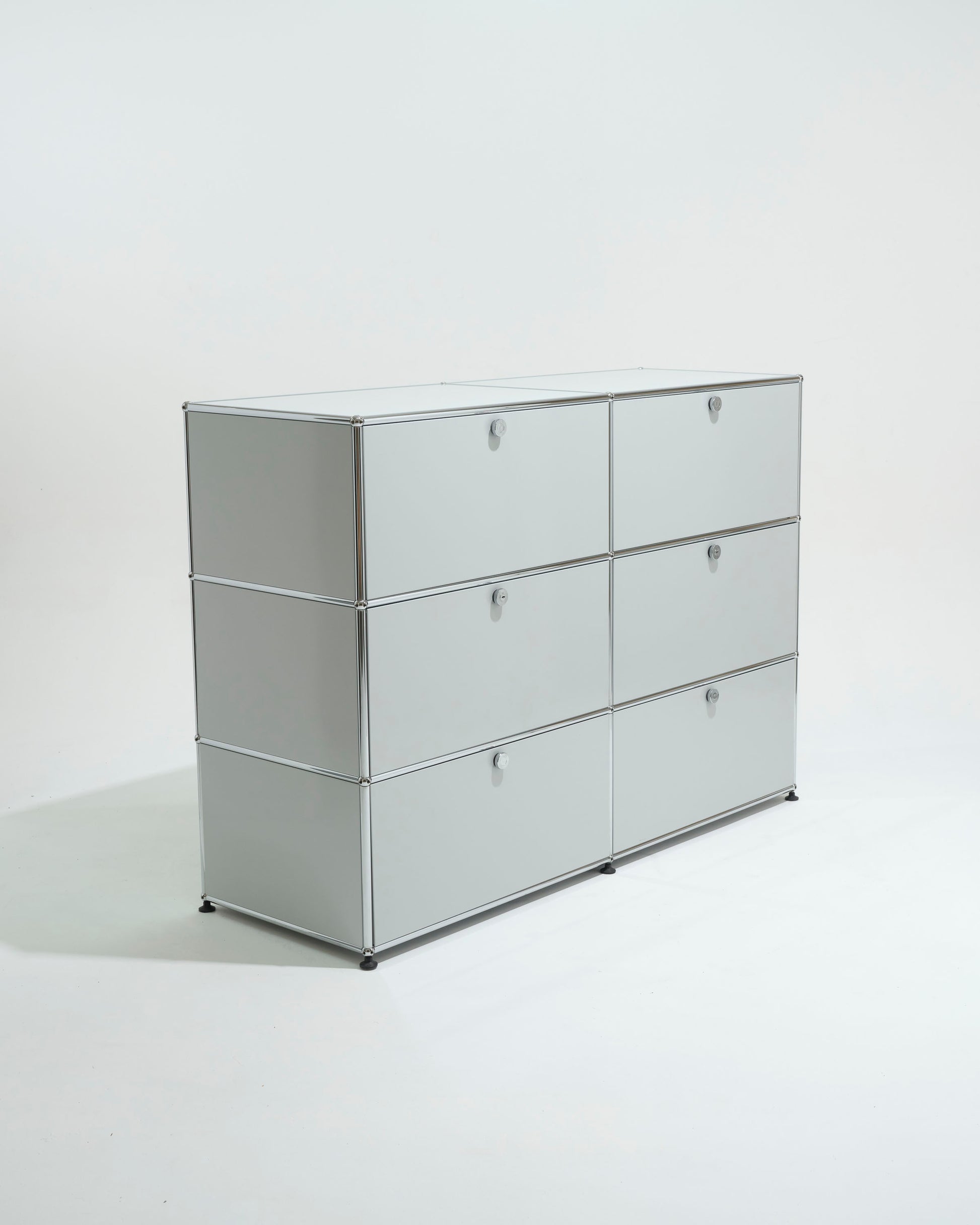 Composed of 6 modules with sliding drawers, it rests on a tubular steel structure articulated around the iconic chrome balls of the USM system.