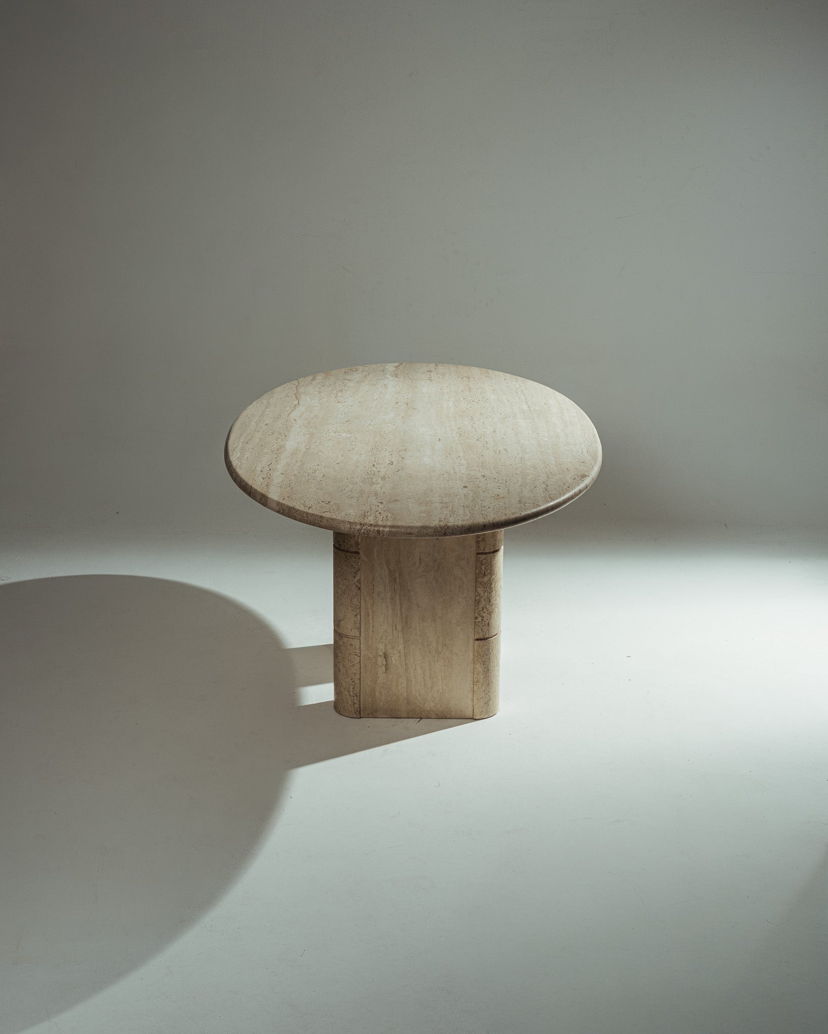 OVAL TRAVERTINE DINING TABLE, ROCHE-BOBOIS, 1970s