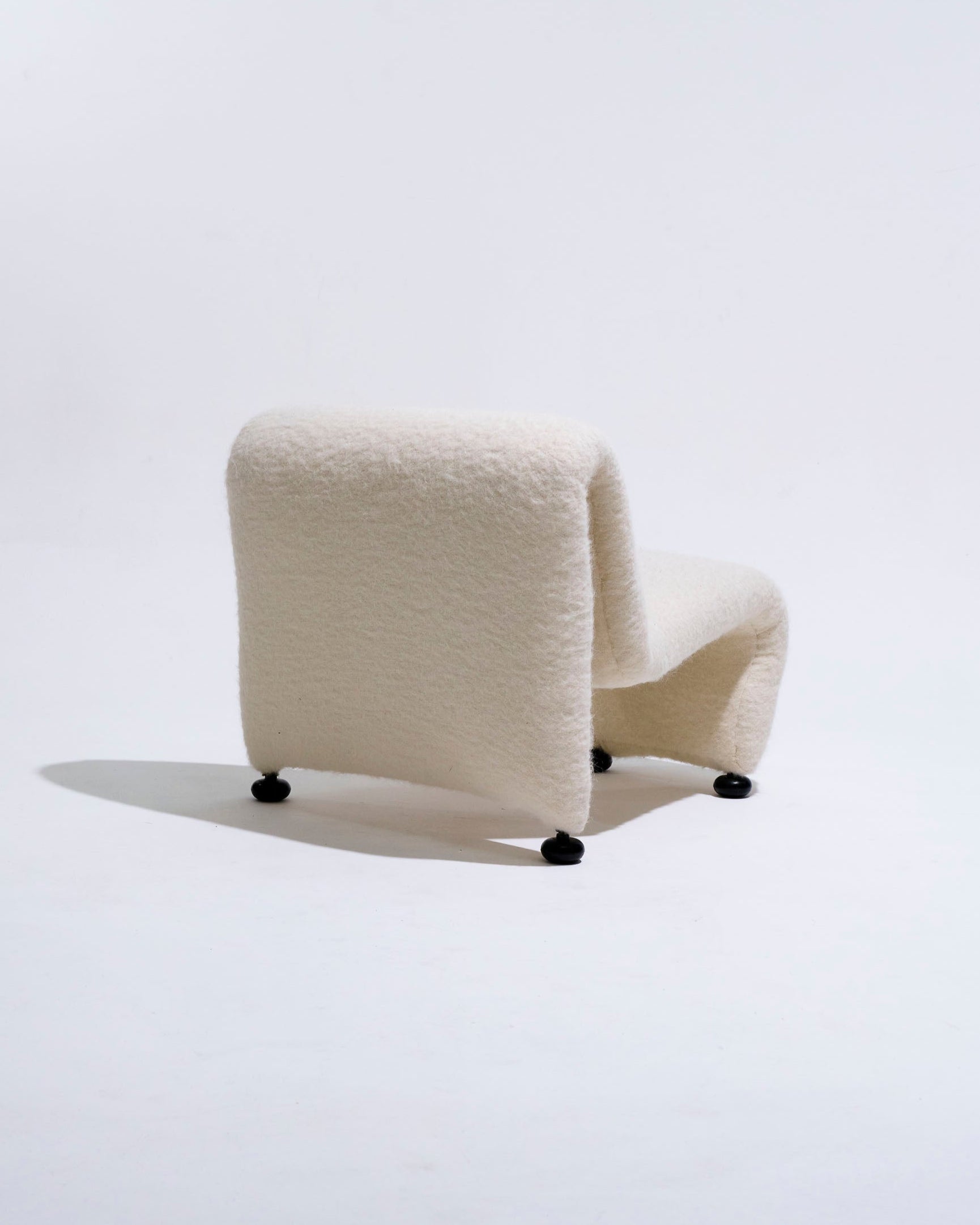 Pair of armless lounge chairs in white woolen fabric, Etienne Fermigier, 1970s