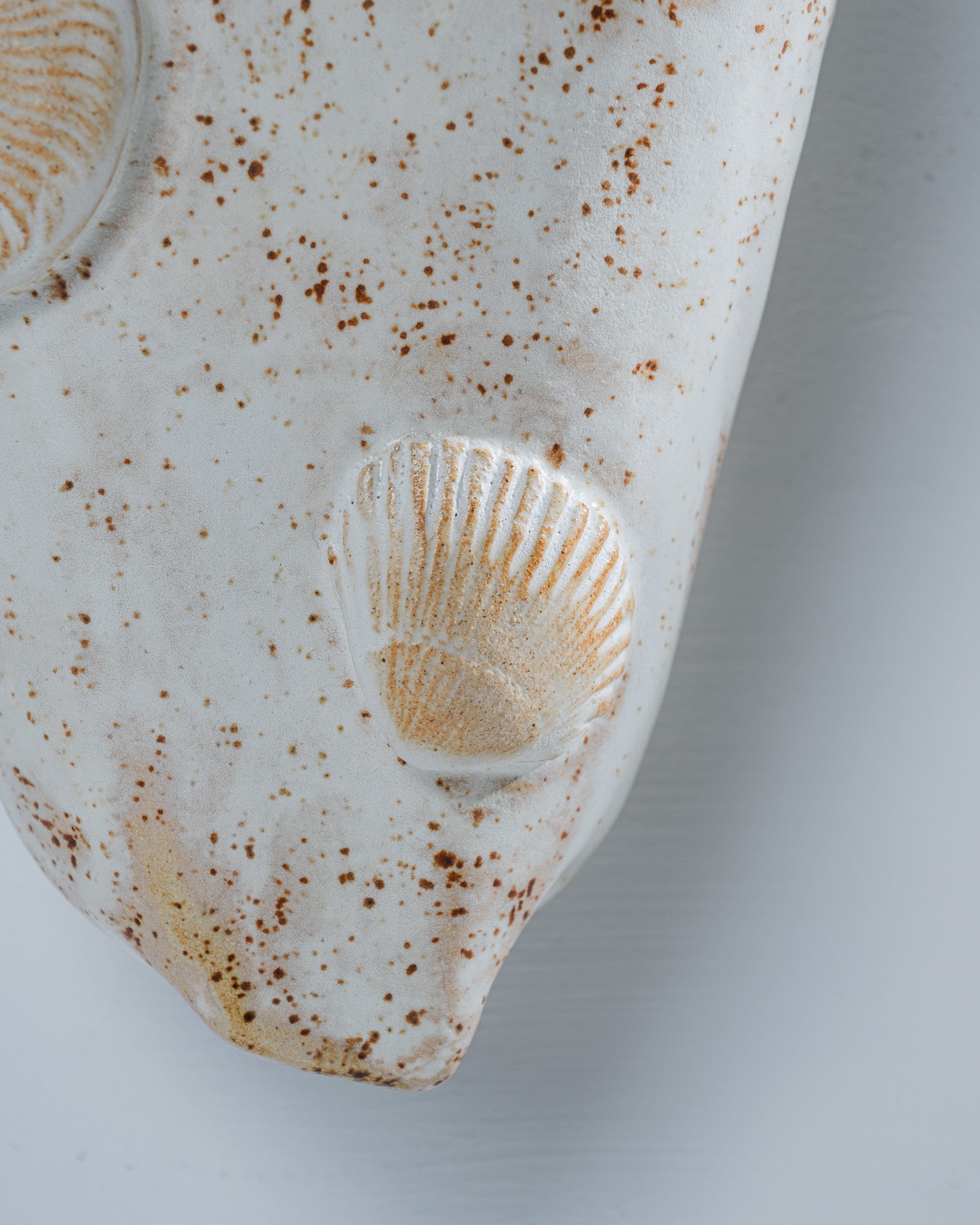 Pair of glazed ceramic wall sconces by Bérénice Gentil, adorned with motifs inspired by the marine world – seashells, coral, and natural textures. Their organic relief and glossy white finish bring a sculptural and luminous touch to any interior.