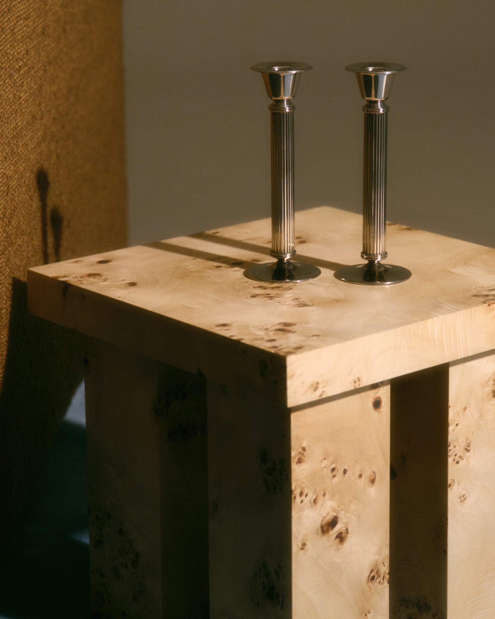 Pair of polished silver metal candlesticks in the Art Deco style from the 1970s. Fluted stem candlesticks, in a modernized neoclassical style. Some signs of wear, consistent with age and use. Good condition.