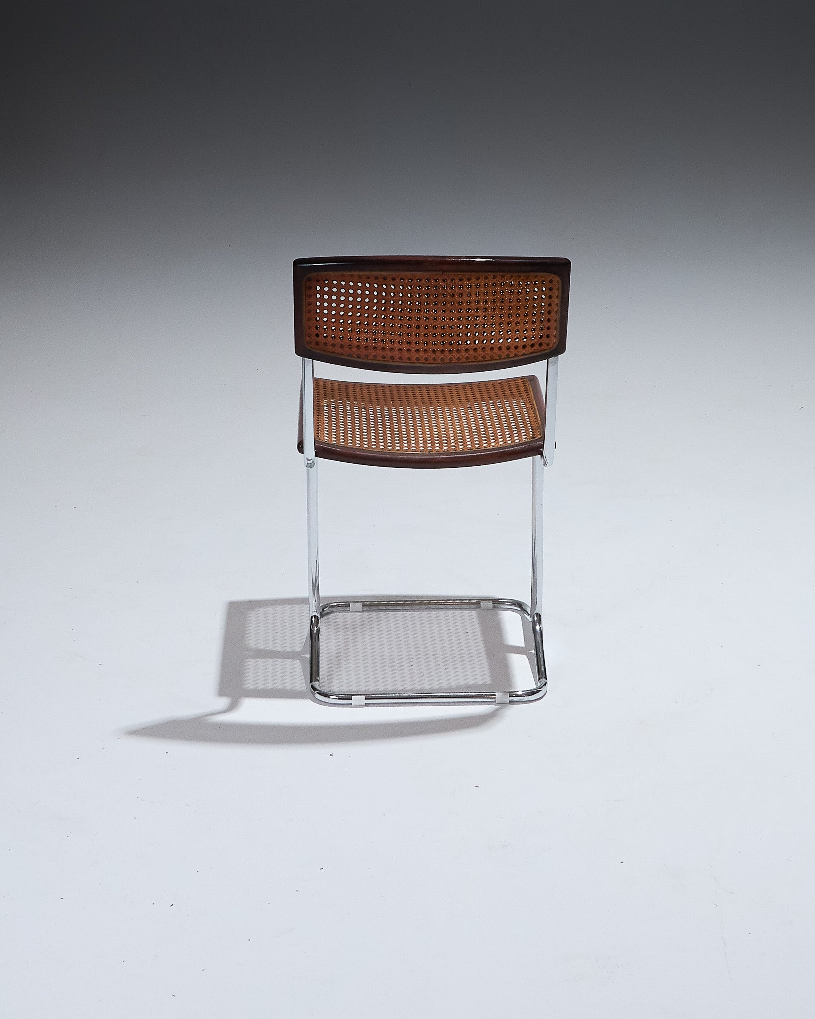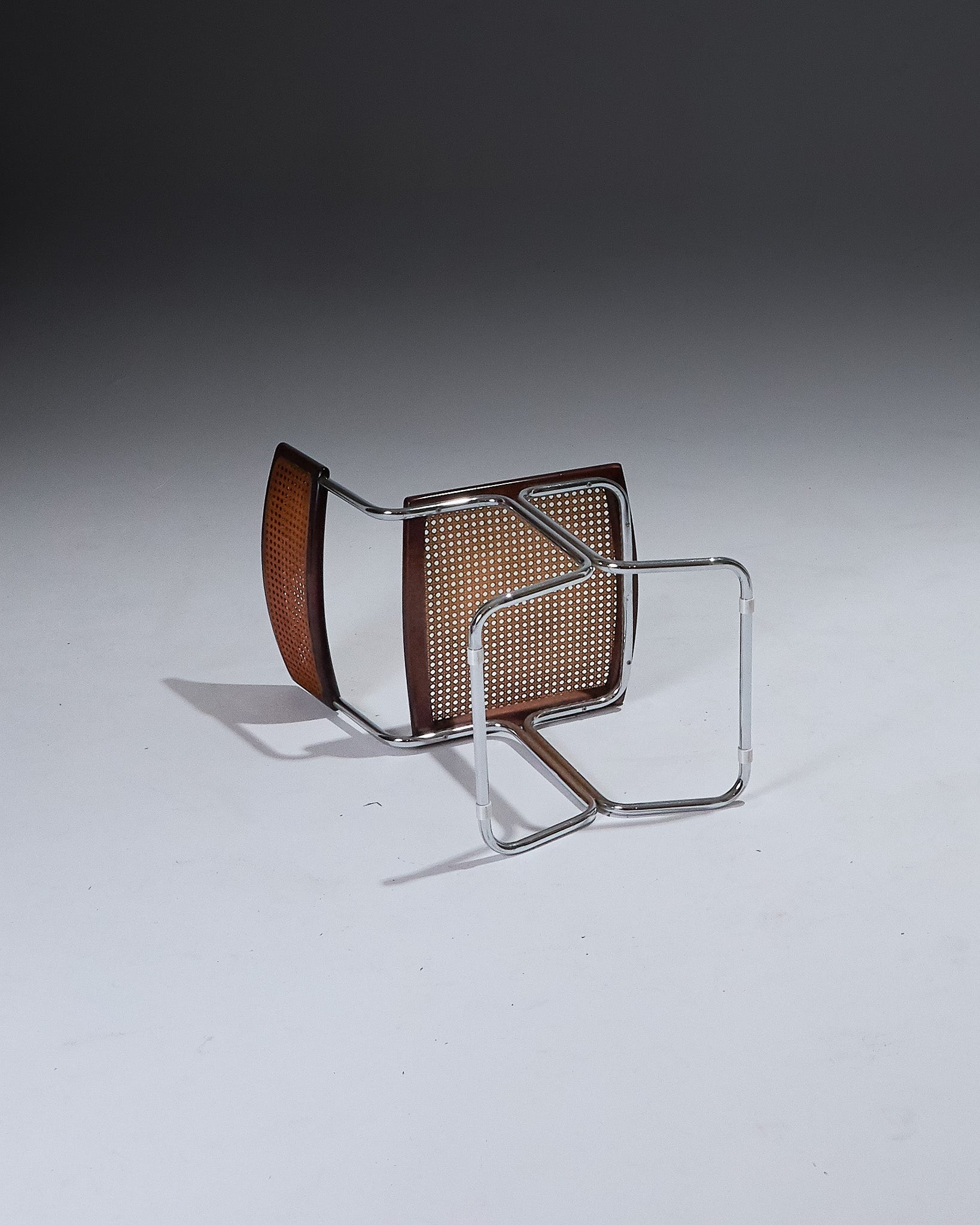 Pair of chairs designed by Antonio Ari Colombo for Arflex , Italy, in the 1970s. Chromed steel tube frame, seat and backrest in perforated wood and caning. Typical Italian design of the period. Very good overall condition.