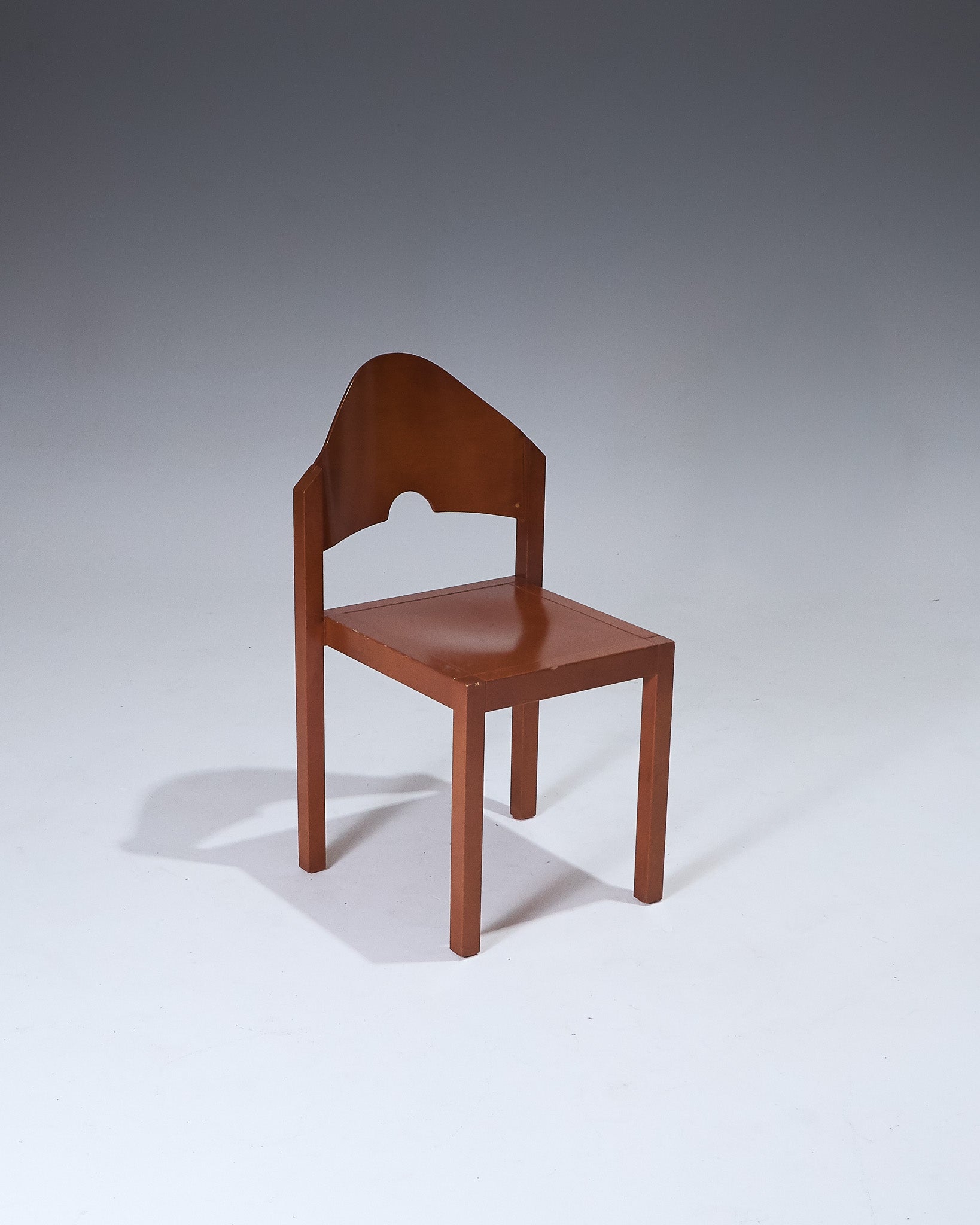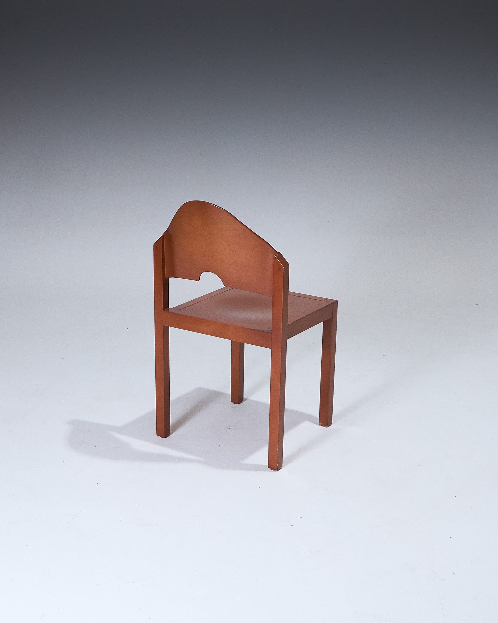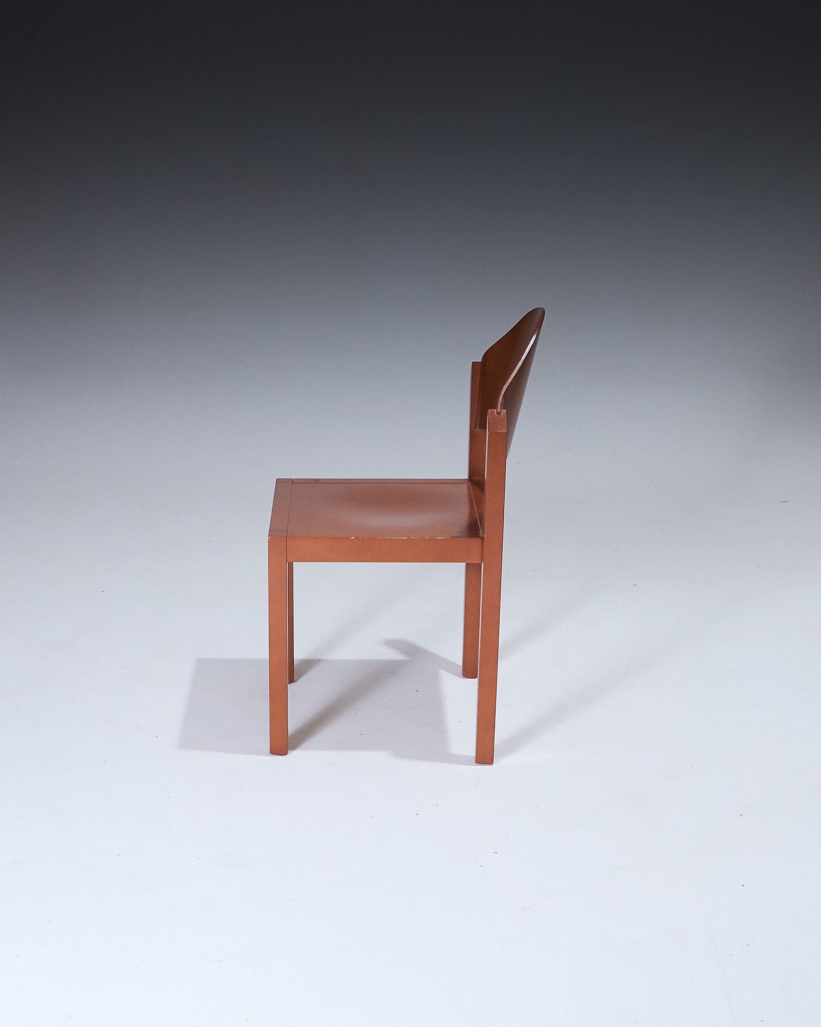 Pair of stackable chairs produced by Thonet in the 1980s. Lacquered beech frame. Curved backrest with central cutout. Square seat and straight legs. Designed for vertical stacking, forming a stepped profile.