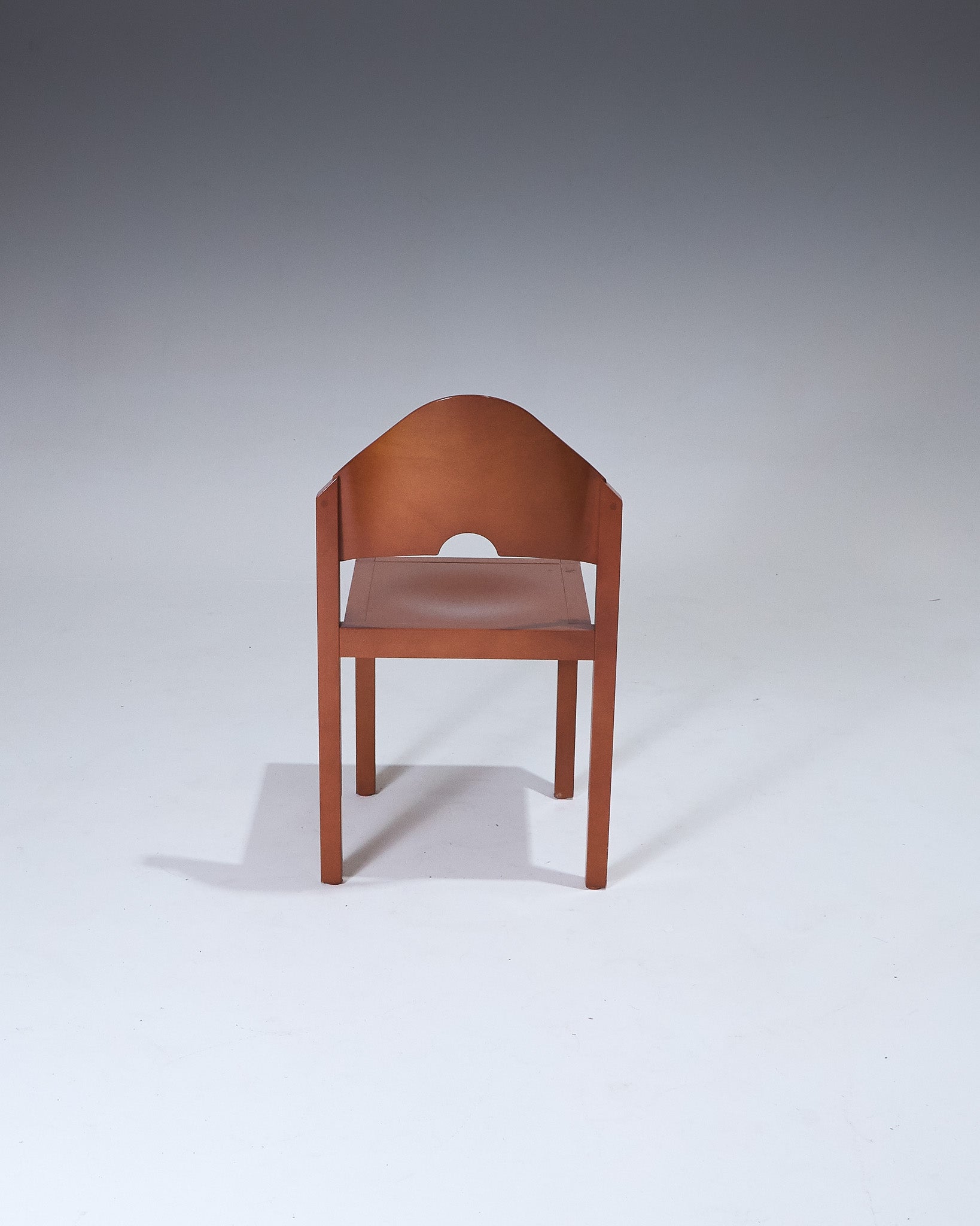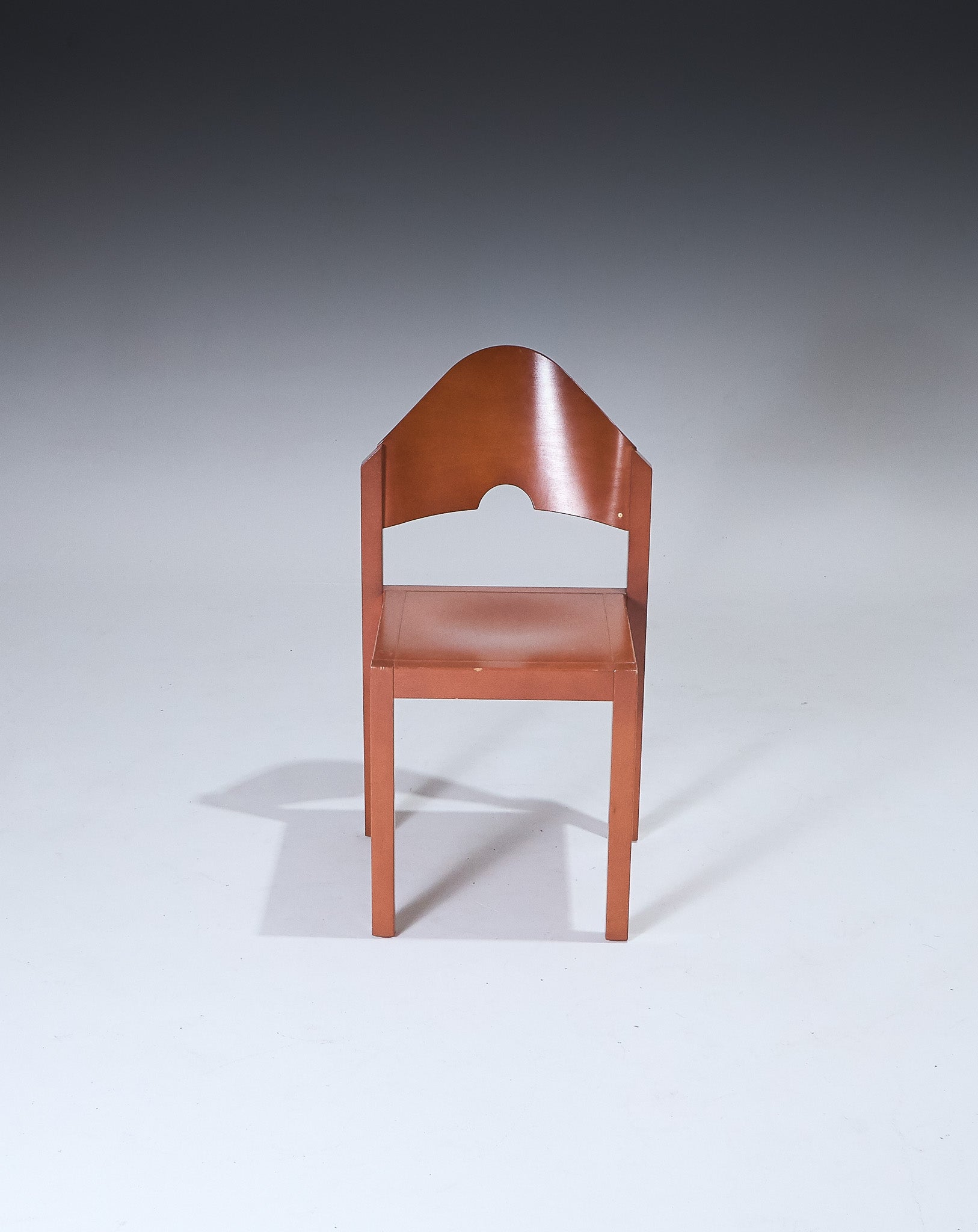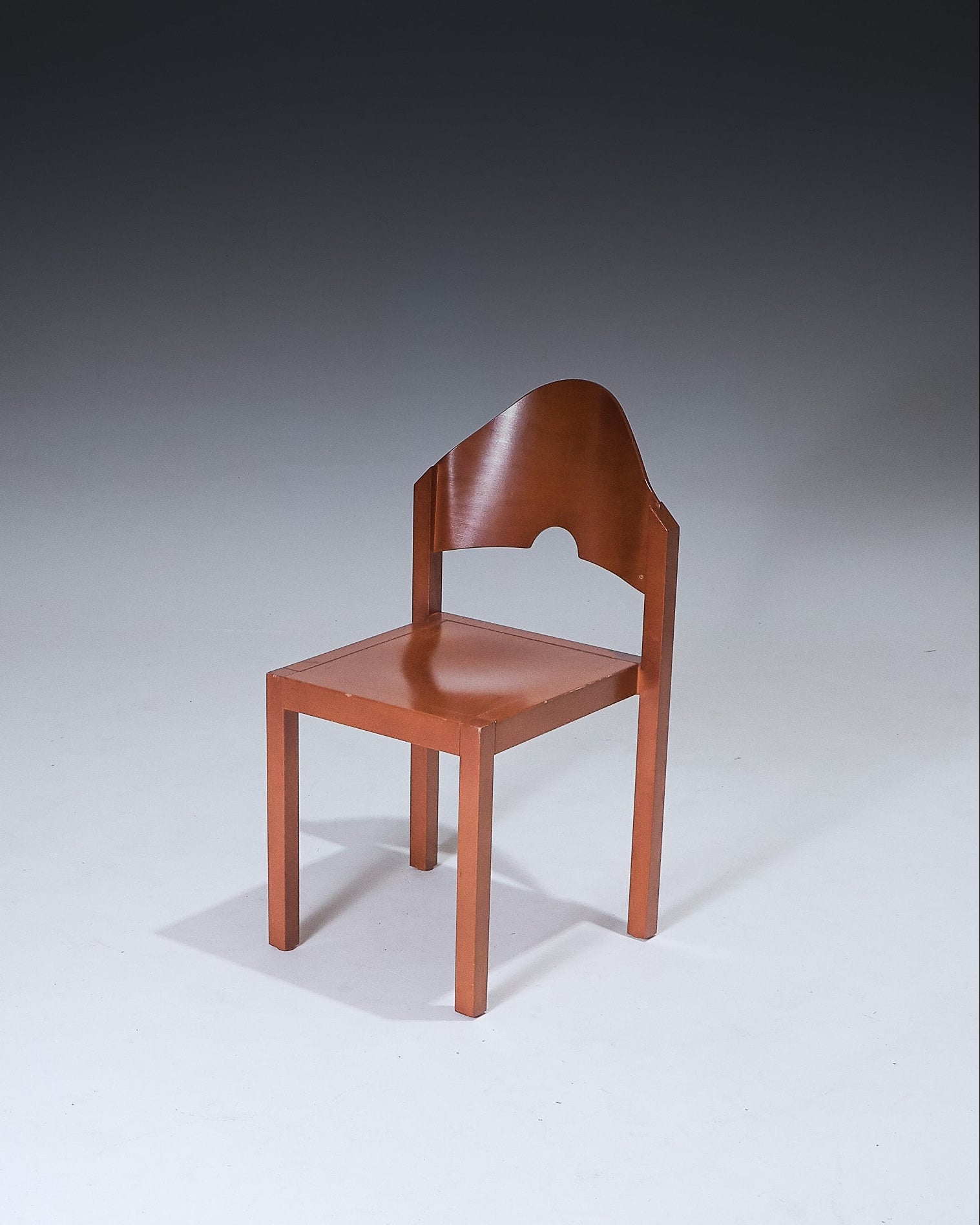 Pair of stackable chairs produced by Thonet in the 1980s. Lacquered beech frame. Curved backrest with central cutout. Square seat and straight legs. Designed for vertical stacking, forming a stepped profile.