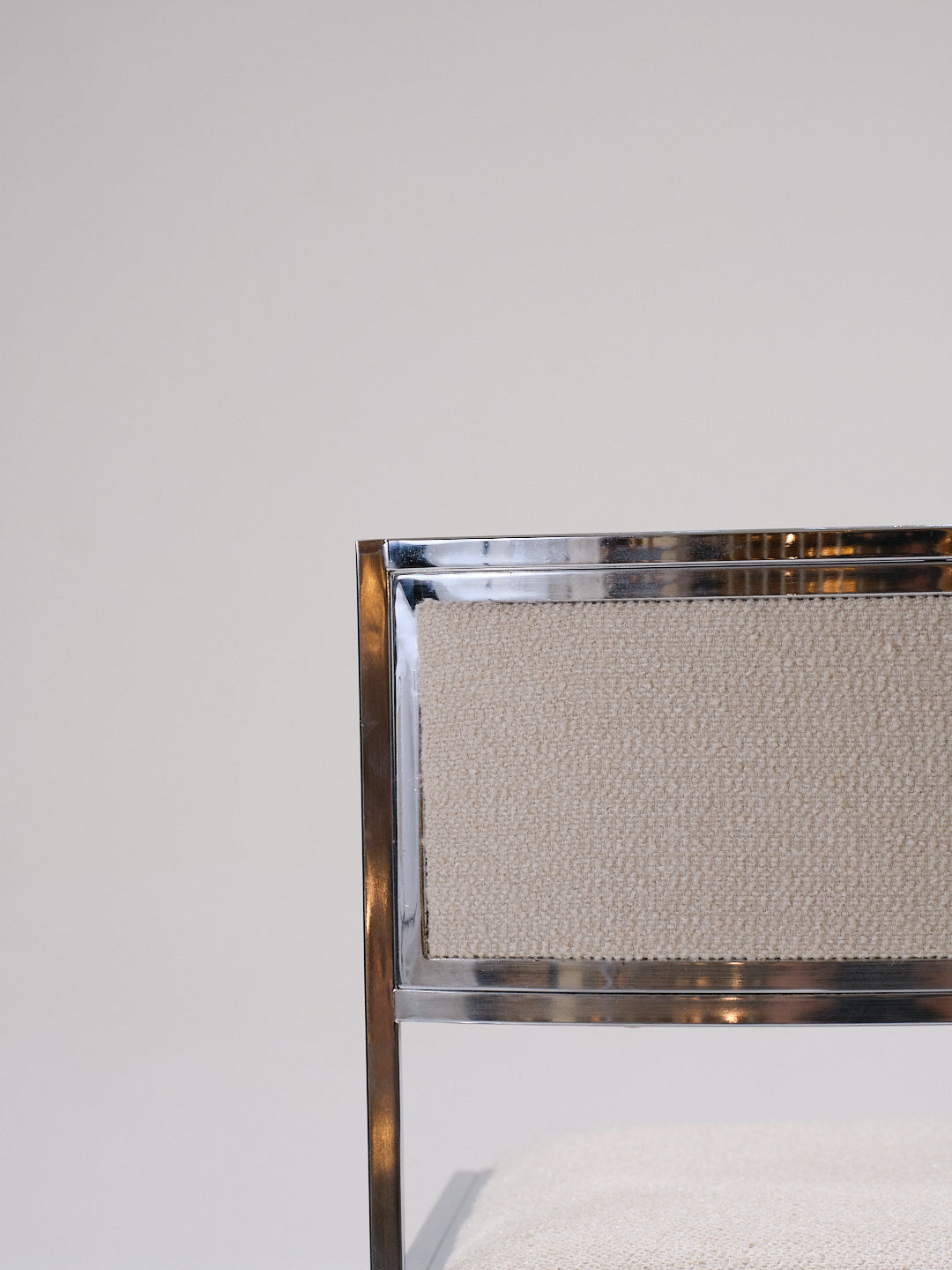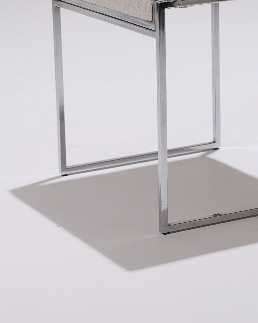 Pair of SQ model chairs attributed to designer Willy Rizzo in the 1970s. Metal frame, seat and backrest fully reupholstered in an off-white textured fabric. In very good condition.