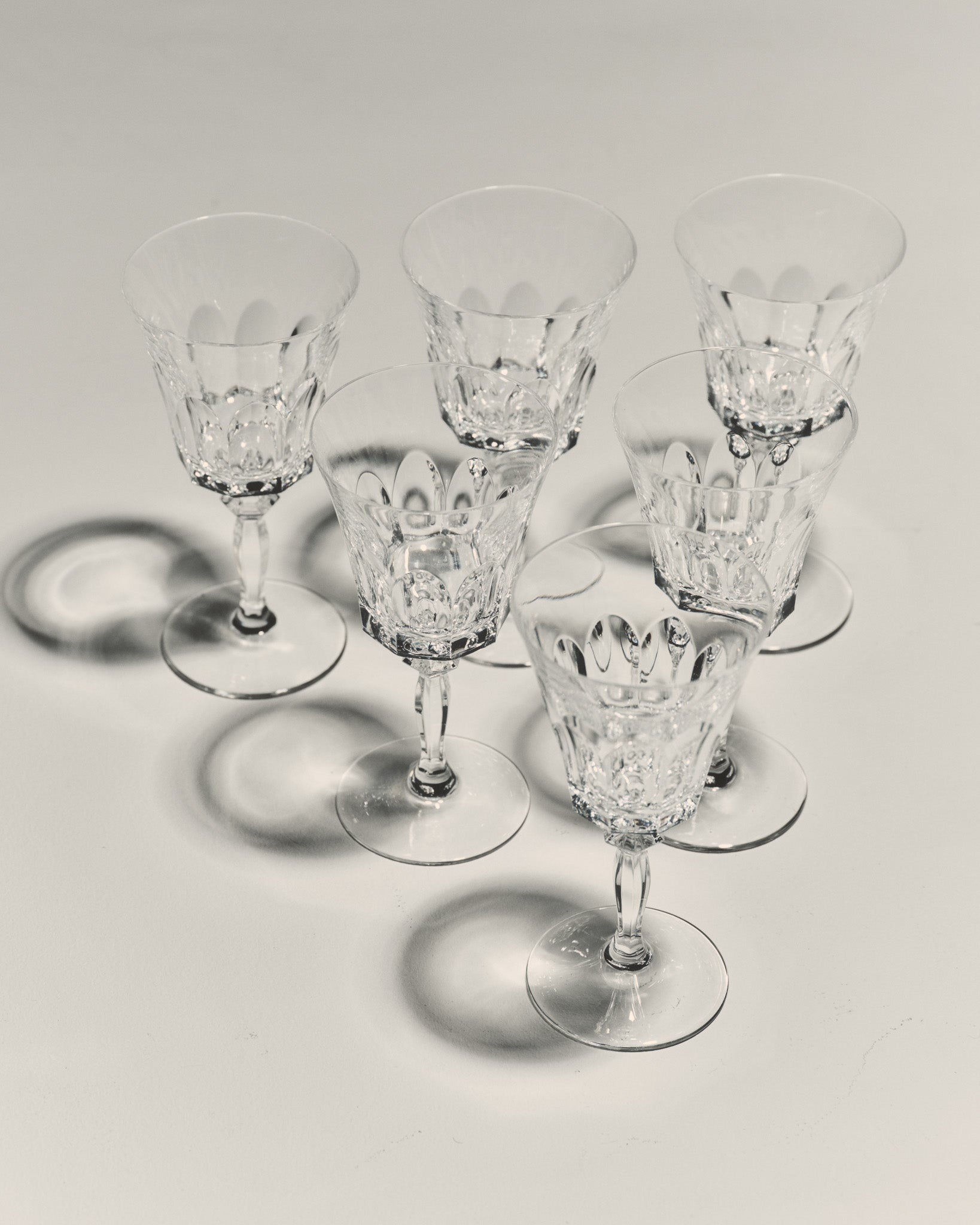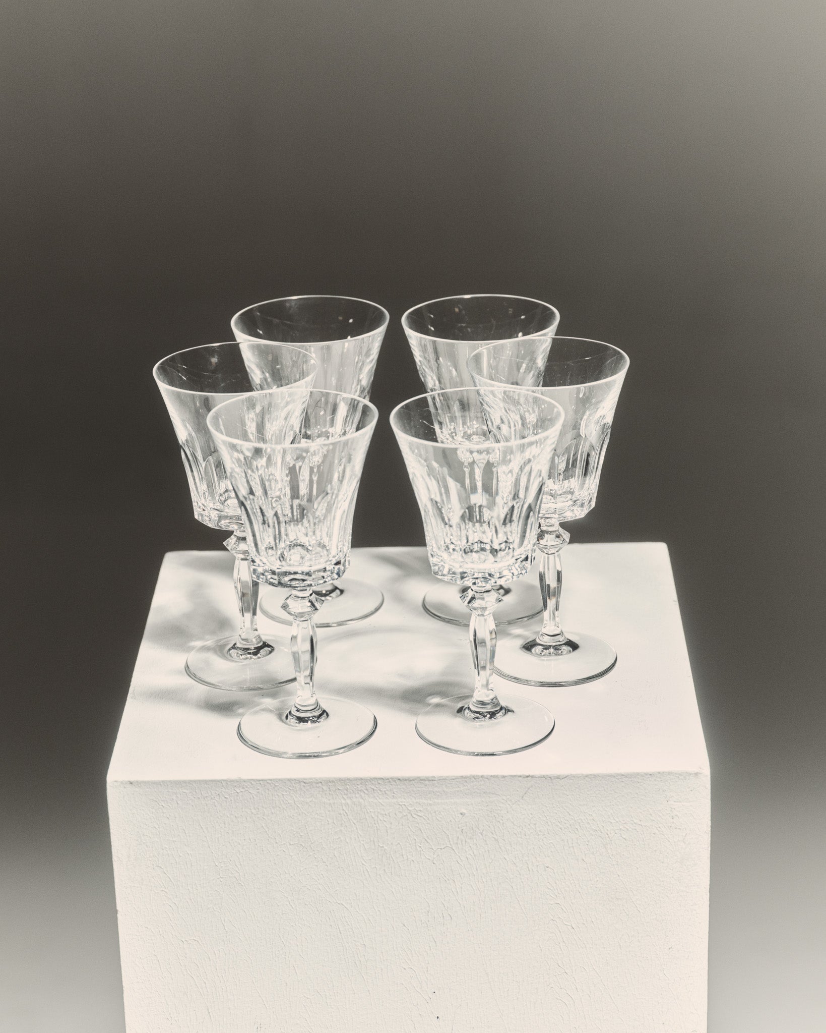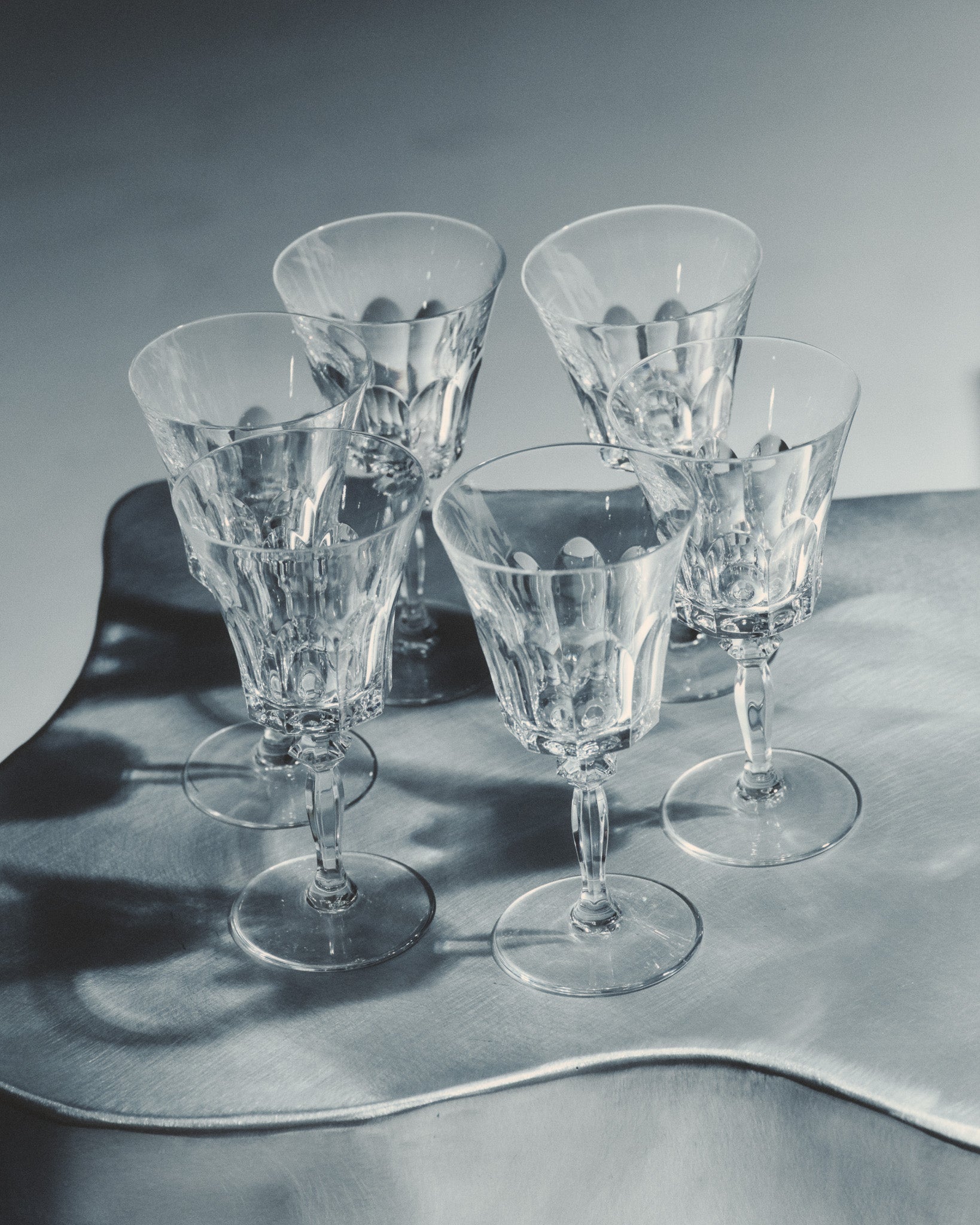 SET OF 6 CRYSTAL WATER GLASSES, SAINT LOUIS, 1950s