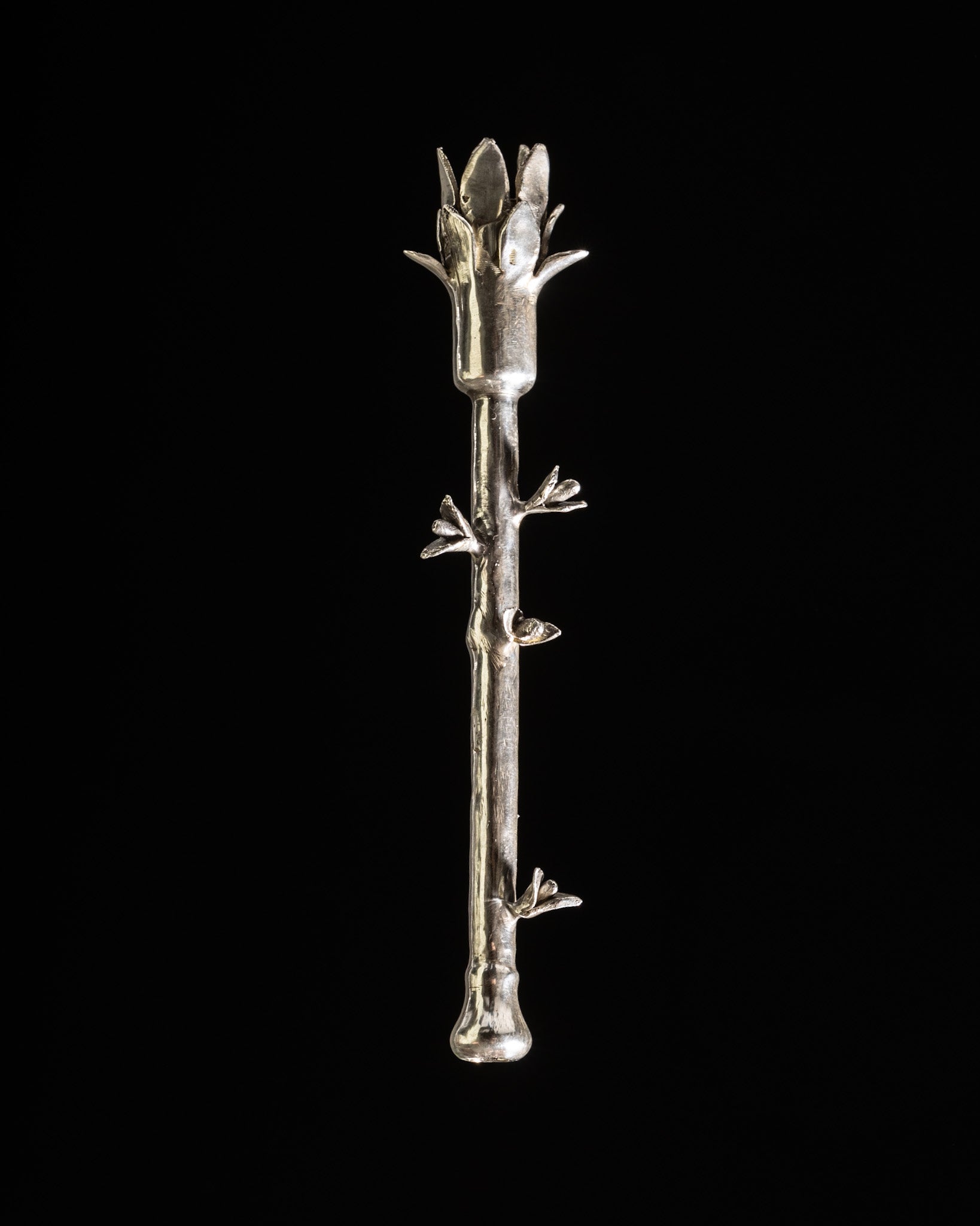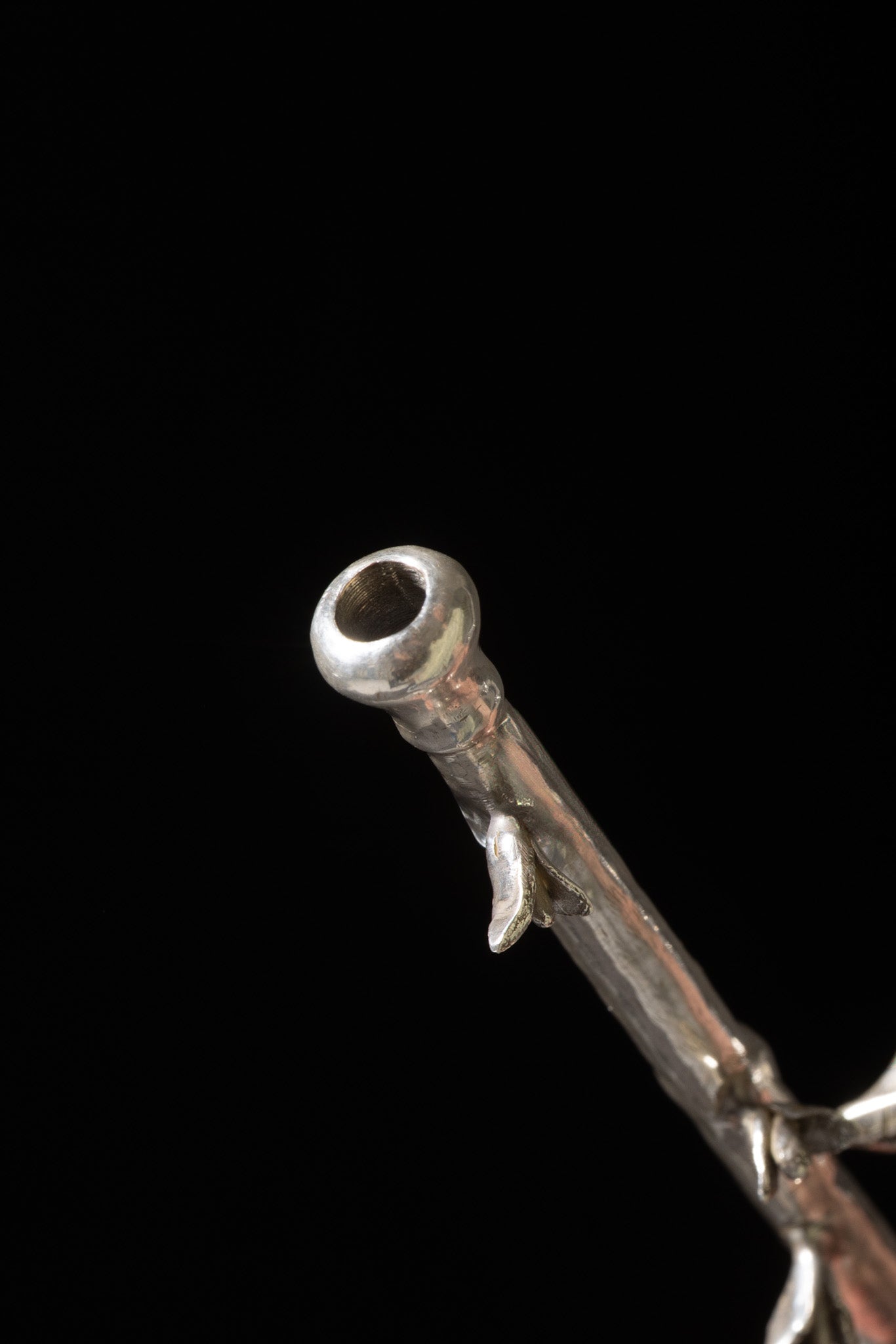 Silver flower cigarette door, handmade by artist Mia Gosset.