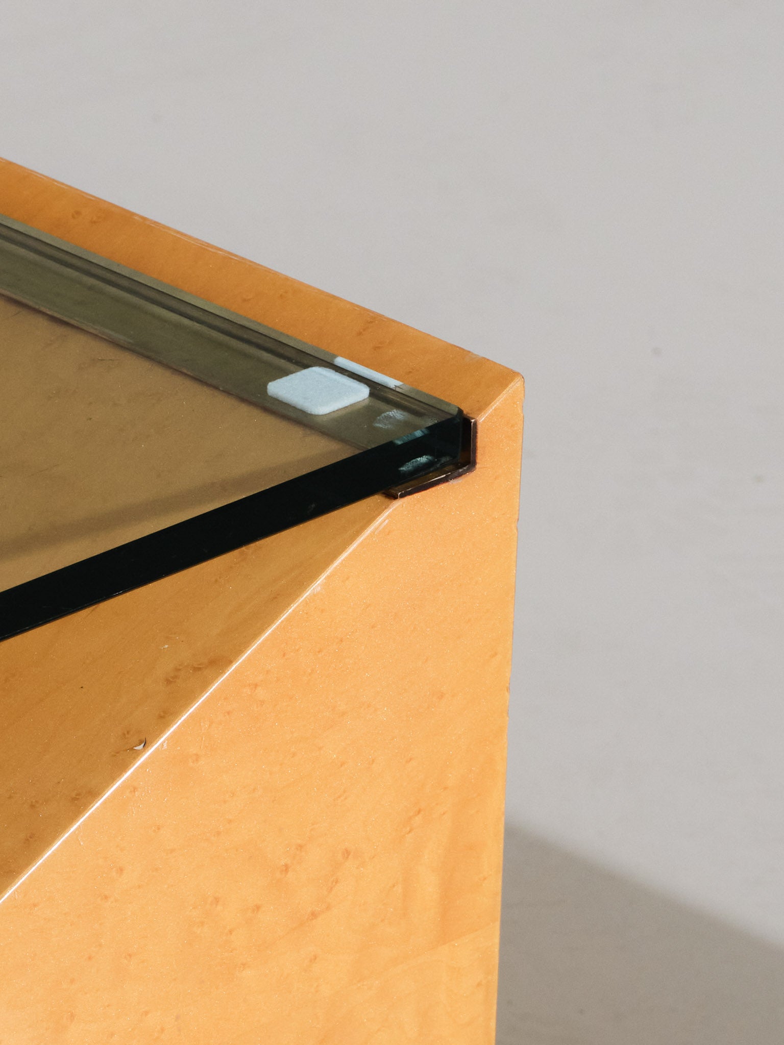 Elm burl and glass coffee table, Roche Bobois, 1980s