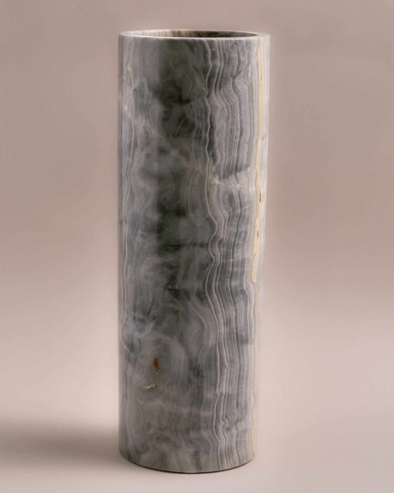 Cylindrical vase in blue onyx. Handcrafted. In very good condition.