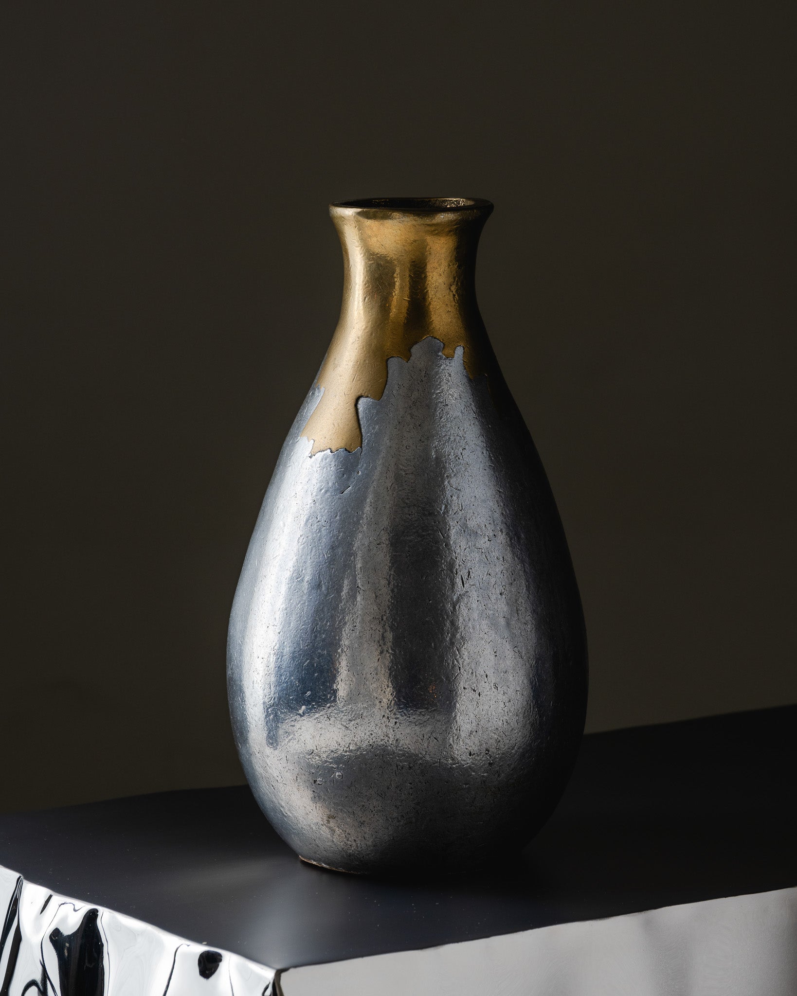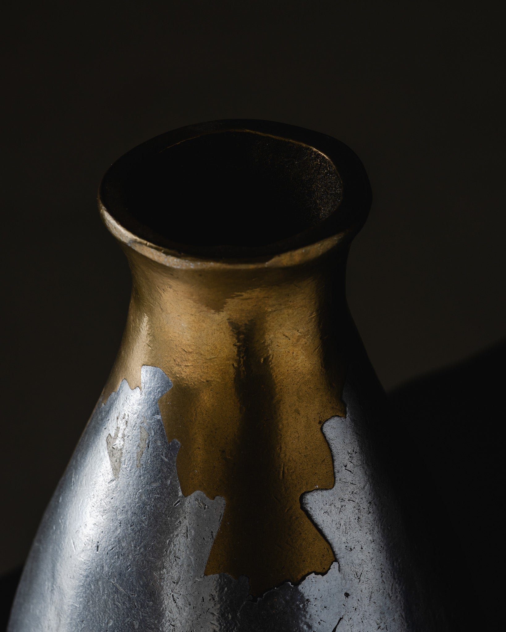 BRONZE AND CAST ALUMINUM VASE, PHILIPPE JEAN, 1970s