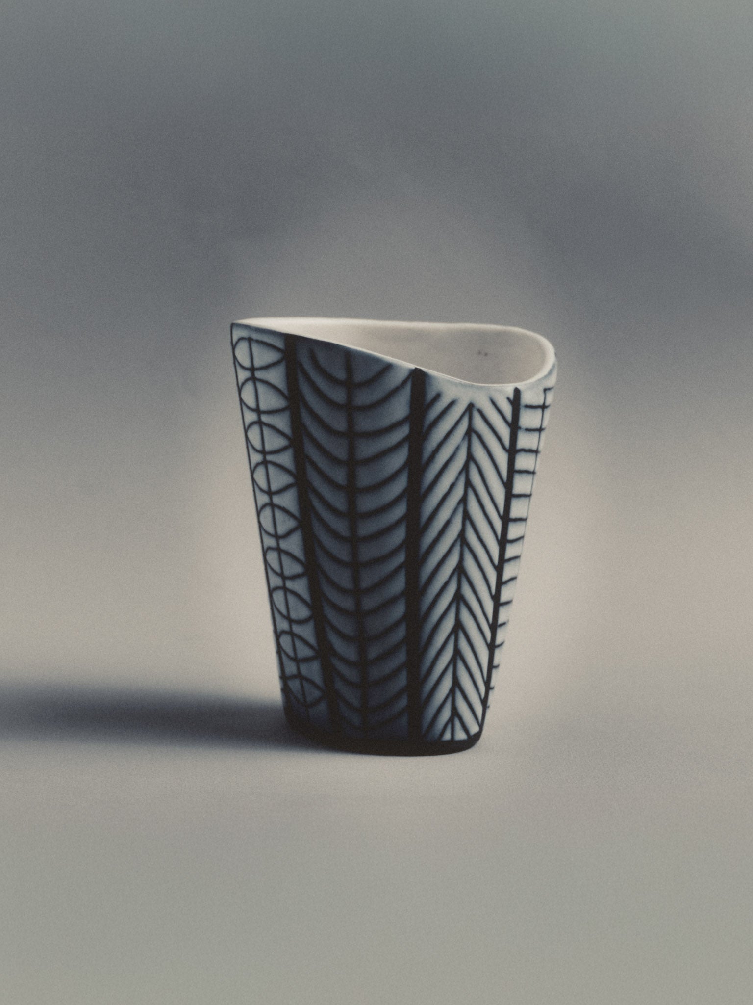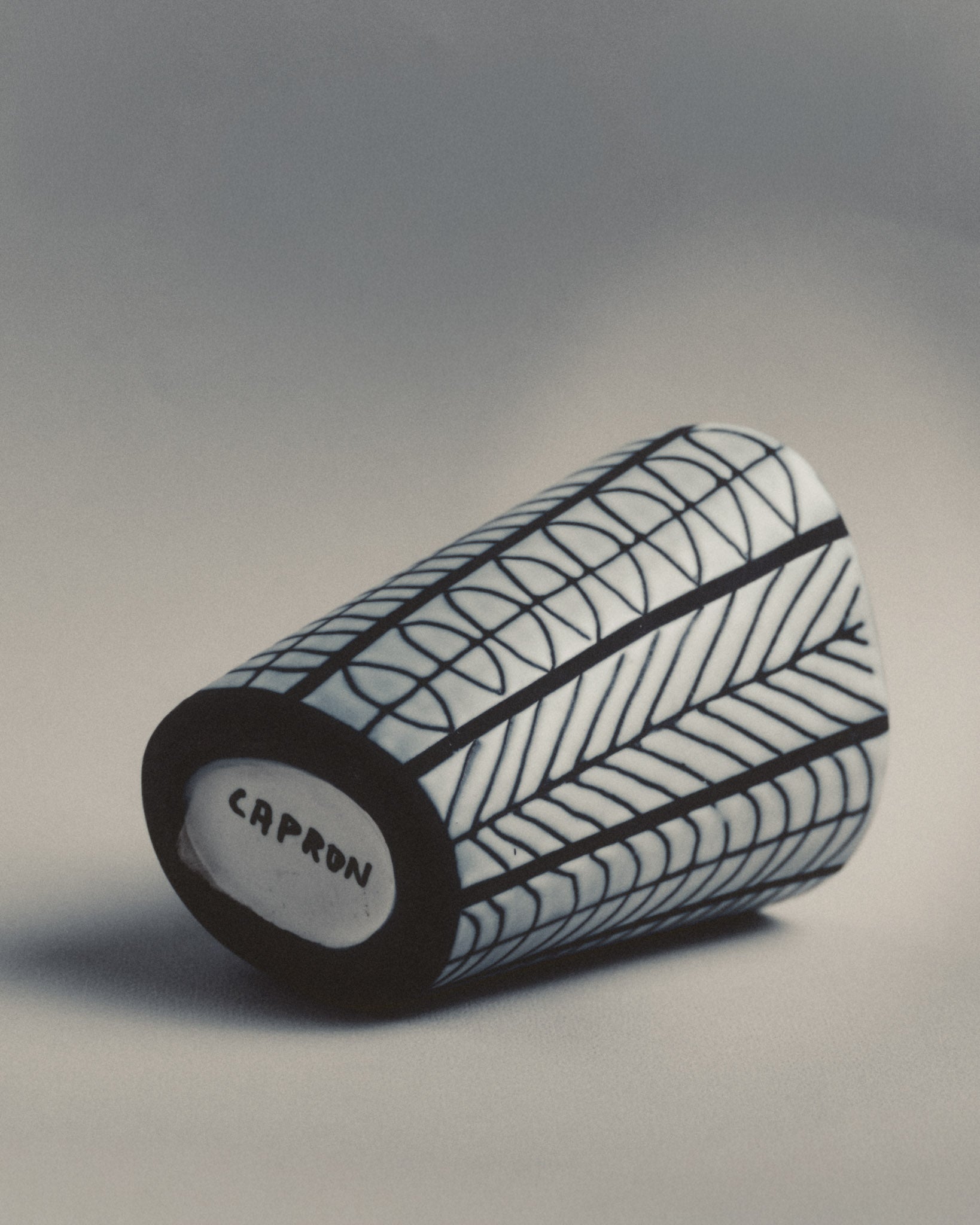 Enameled ceramic vase of designer Roger Capron (1922-2006), 1960s. Decor in black and white reserve. This vase is signed by the Capron ceramist on the back. Very good condition.