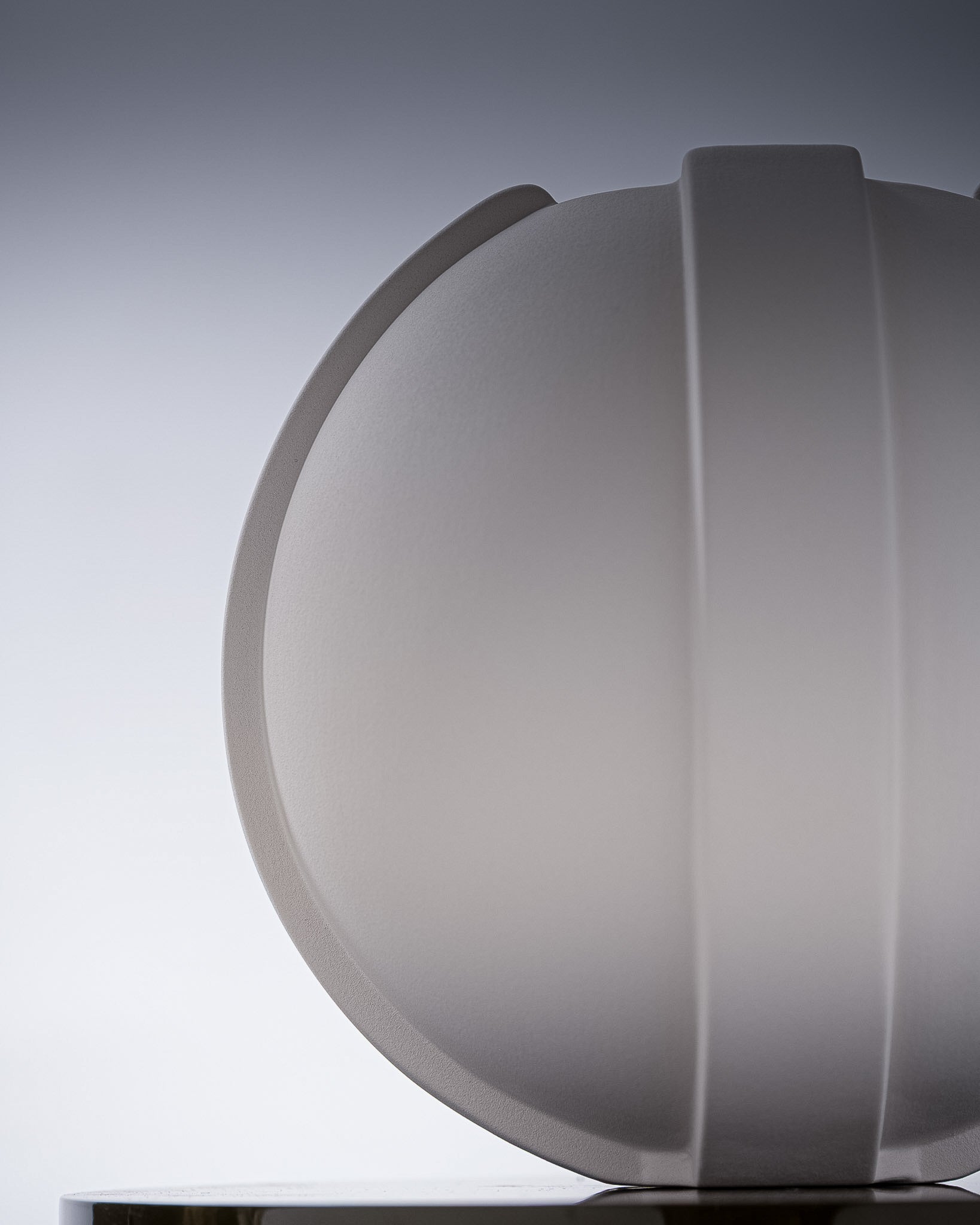 The Vinci vase features a round silhouette, accentuated by a band encircling its shape like a belt—a visual detail symbolizing circular energy. Hand-molded in Portugal.