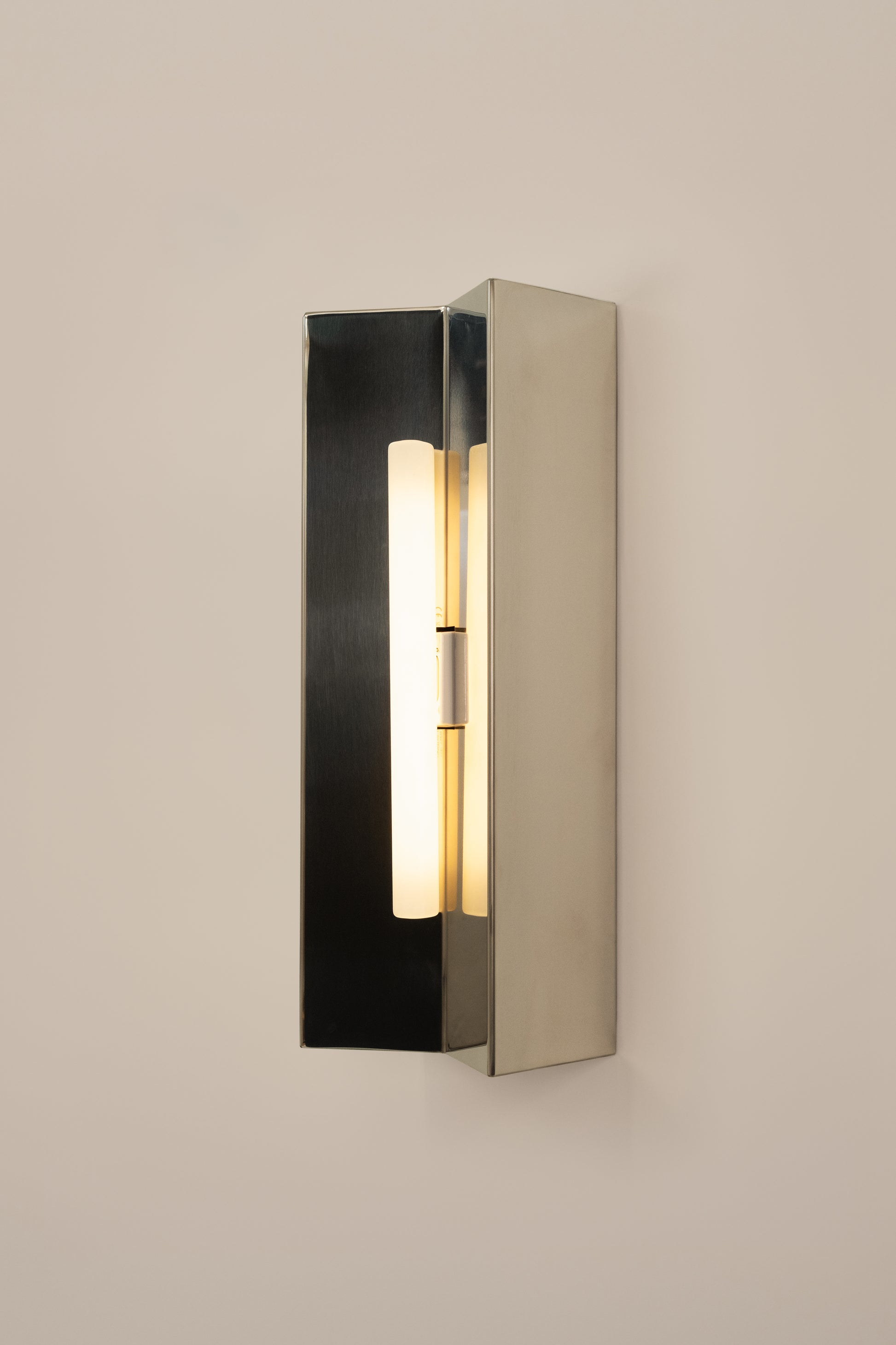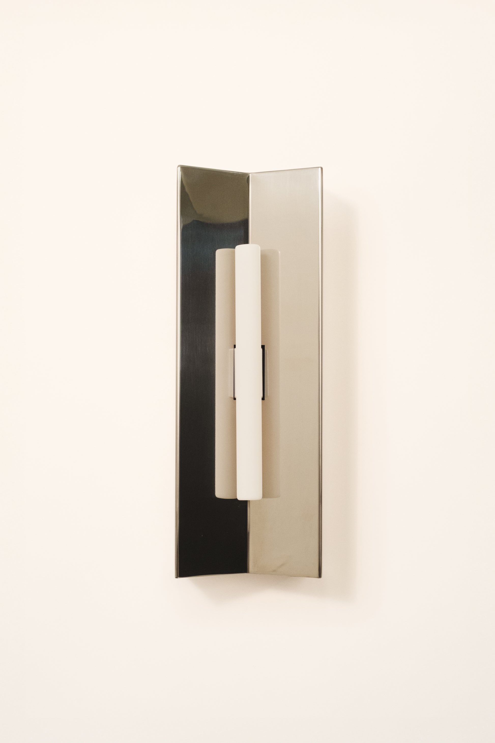 Applique Arrow sans diffuseur en acier poli, par Violaine d'Harcourt. Fabriquée à la main à Lisbonne, Portugal