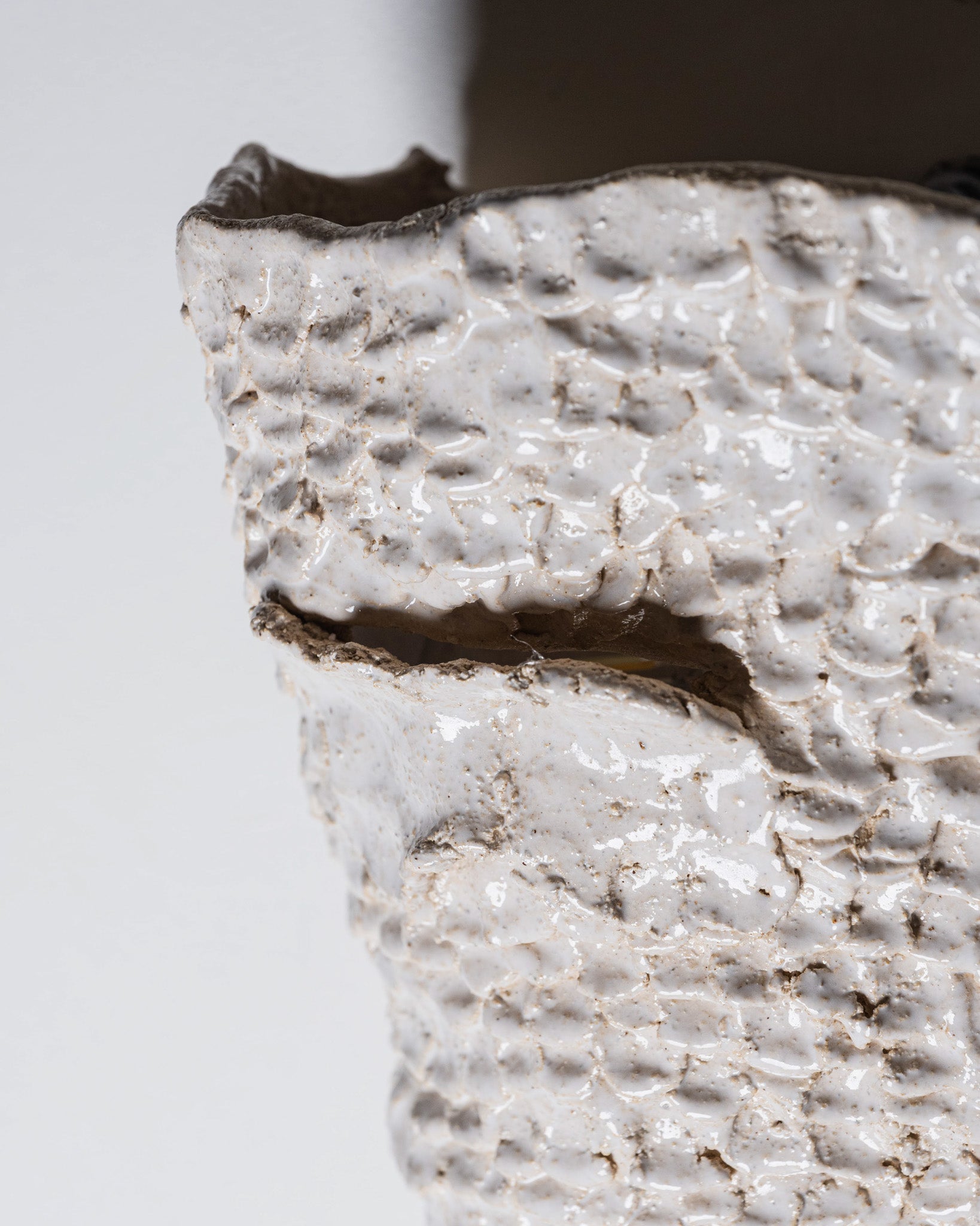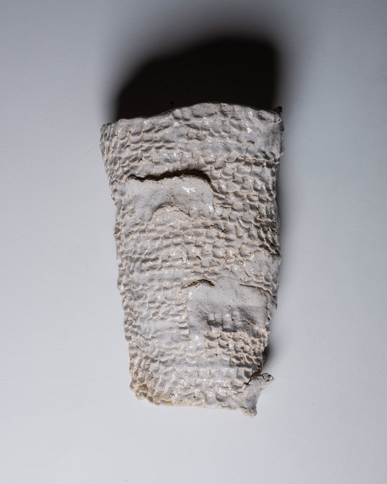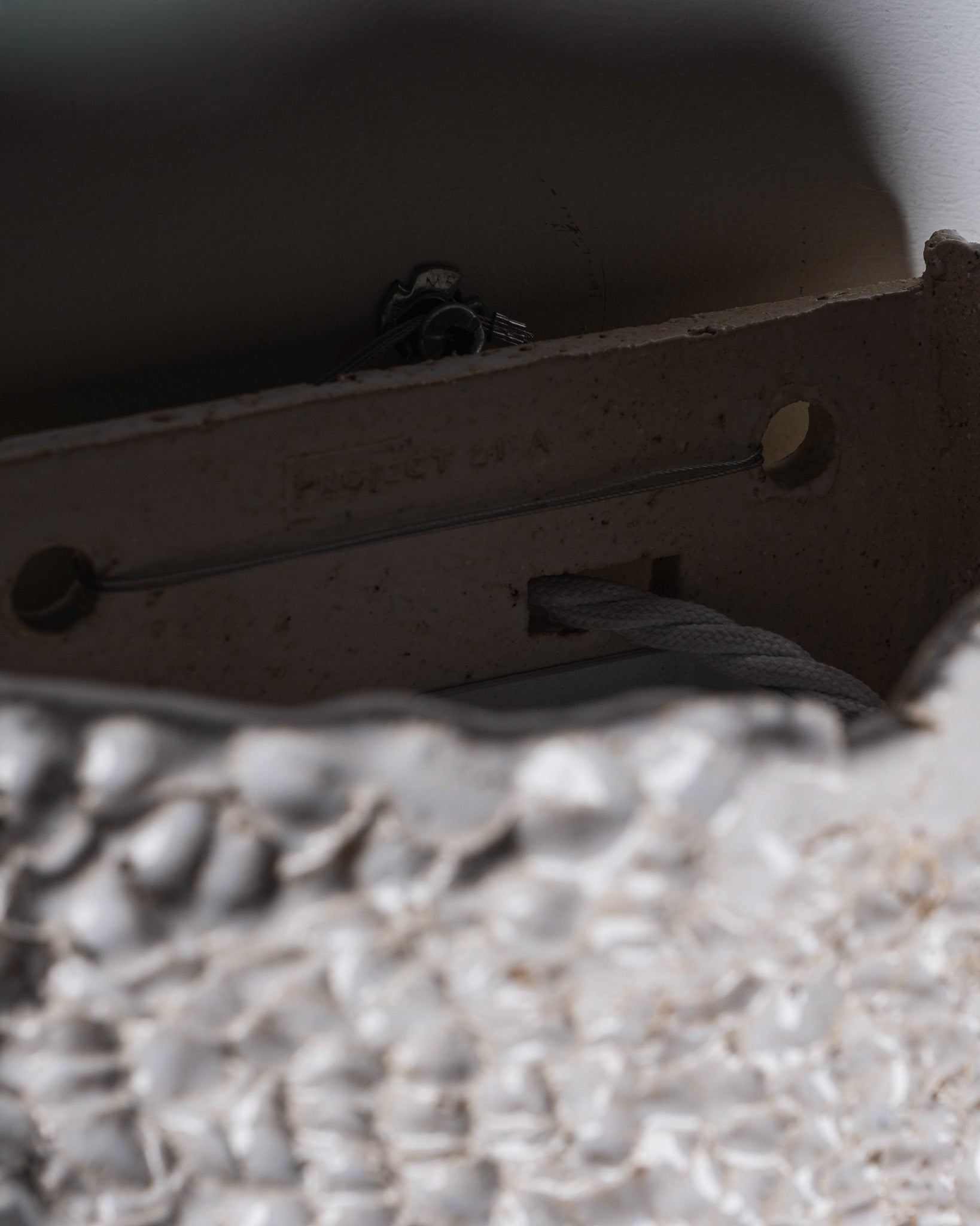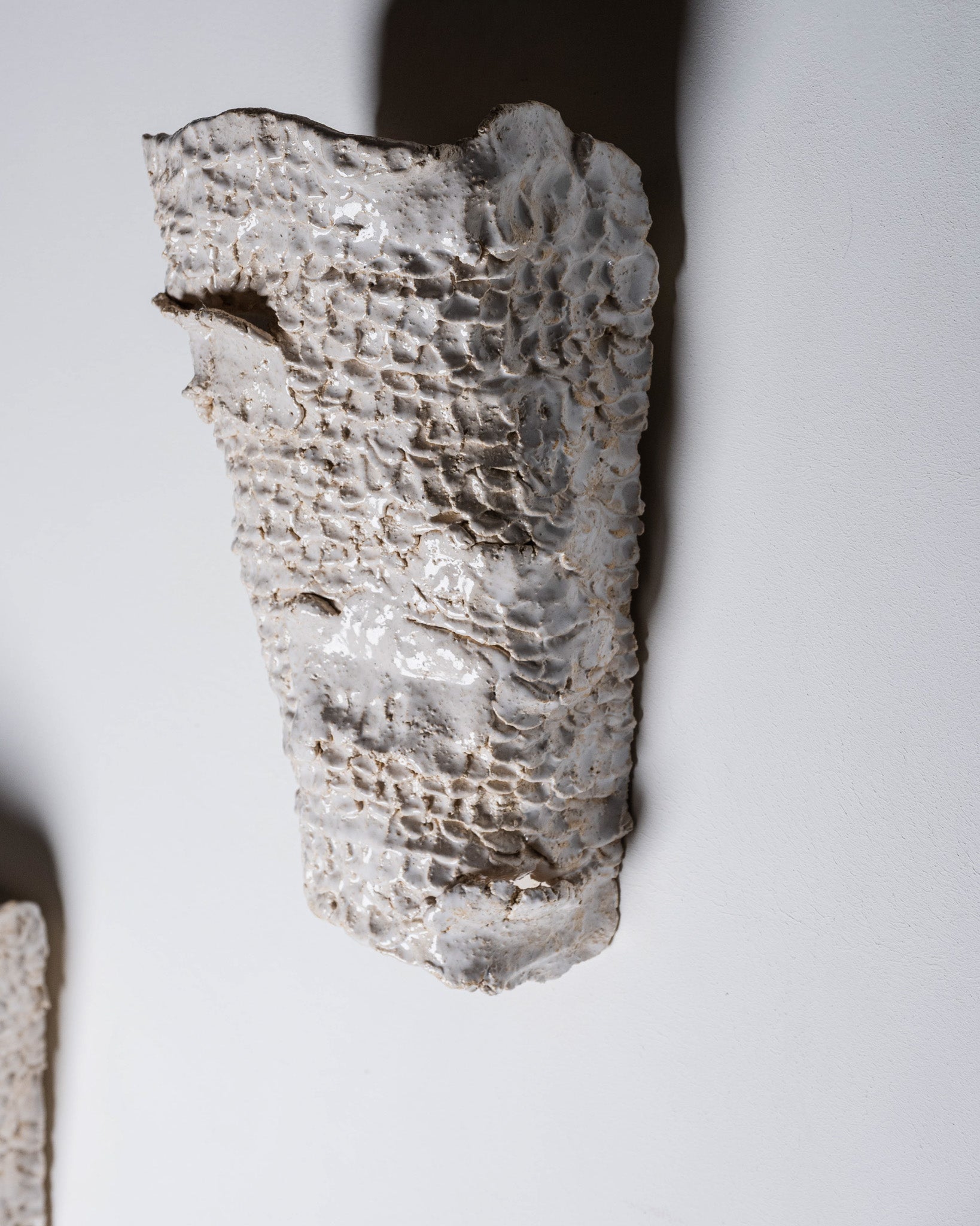 Applique murale CASA n° 1, conçue en 2023. Luminaire en céramique à la finition texturée, fabriqué dans l’atelier de céramique du Projet 213A. Chaque pièce est unique de par sa fabrication ; les formes et les nuances peuvent légèrement varier.